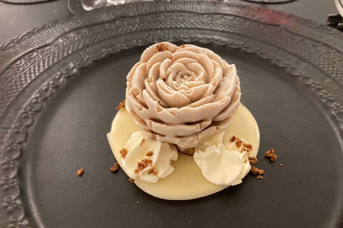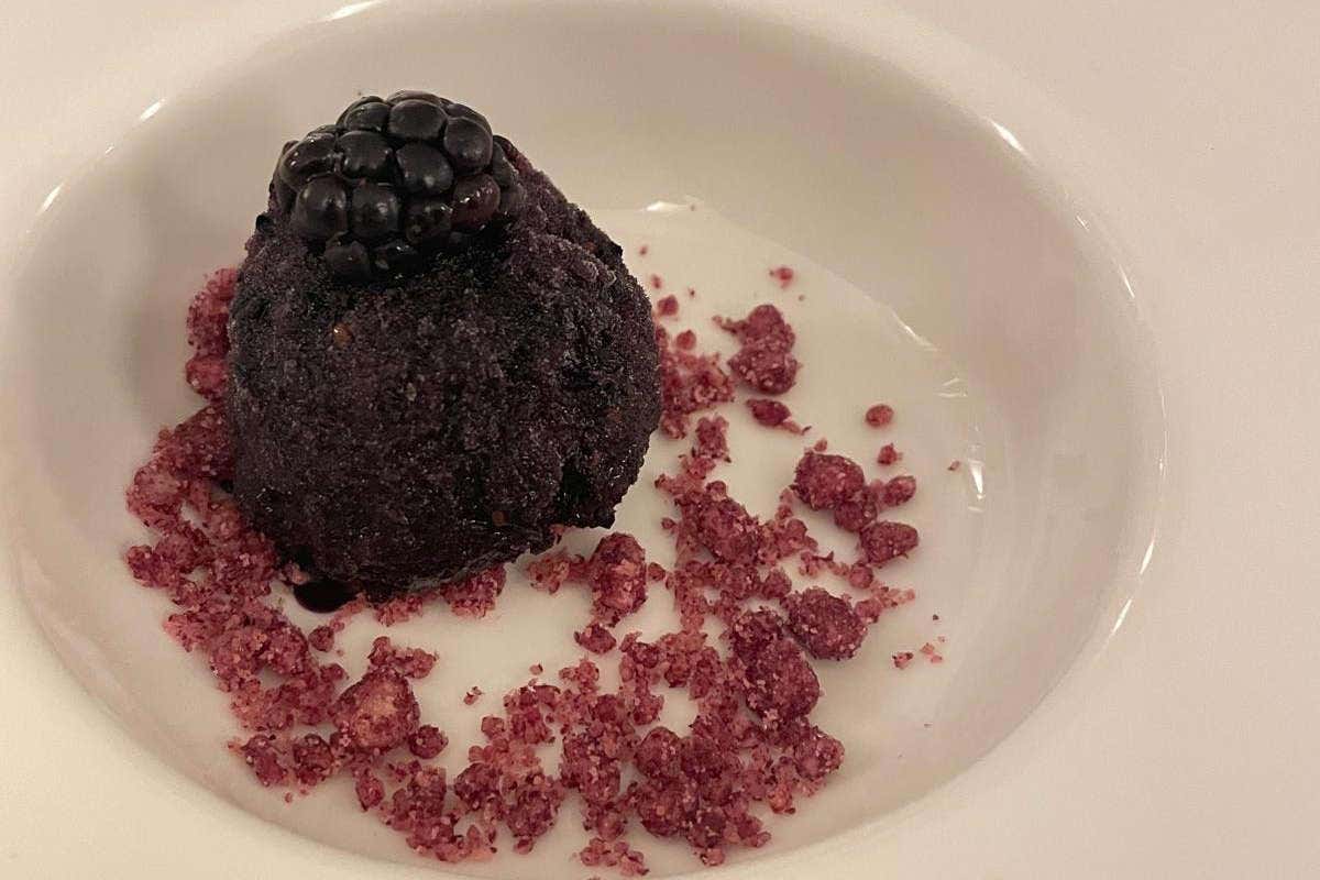 Ogni piatto di questi menu, pur potendo essere scelto singolarmente, rappresenta una proposta completa che racconta attraverso i sapori una storia di territorio, passione e innovazione. Il viaggio gastronomico si conclude con un predessert a base di more, un gelato con crumble di frutta che chiude in bellezza l’esperienza sensoriale, seguito da una Suprema intensa alla mandorla, spugna di babà al rhum e cremoso all’arancia, un dessert che, pur nella sua consistenza coriacea, si fa apprezzare per la sua novità.