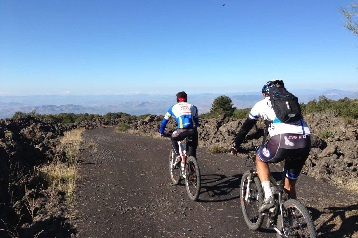 Per gli amanti dell’MTB particolarmente consigliato è il Giro dell’Etna, con partenza dal bike point di Zafferana Etnea: si pedala verso la fascia pedemontana costituita dai suggestivi centri di Trecastagni, Pedara, Nicolosi e Belpasso. Aggirando in senso orario il vulcano ci si inoltra verso nord superando Santa Maria di Licodia, Biancavilla e Adrano, per immergersi nella parte più spettacolare del giro, a partire dalle lave di Bronte, sulle quali attecchiscono le piante di pistacchio, mentre lo sguardo si spinge dalla cima del vulcano fino al centro della Sicilia. Si raggiunge la cittadina medievale di Randazzo, a ridosso di tre parchi naturali - dell’Etna, dei Nebrodi e dell’Alcantara - e, costeggiando il versante nord del vulcano, si arriva a Linguaglossa da dove, in mezzo a molteplici e rigogliosi vigneti, si ritorna con un percorso ad anello a Zafferana Etnea.