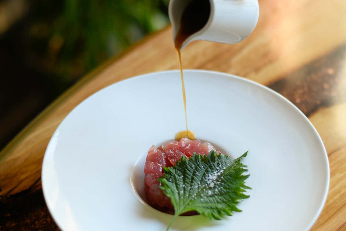 Tartare di tonno rosso con foglia di shiso e salsa teriyaki