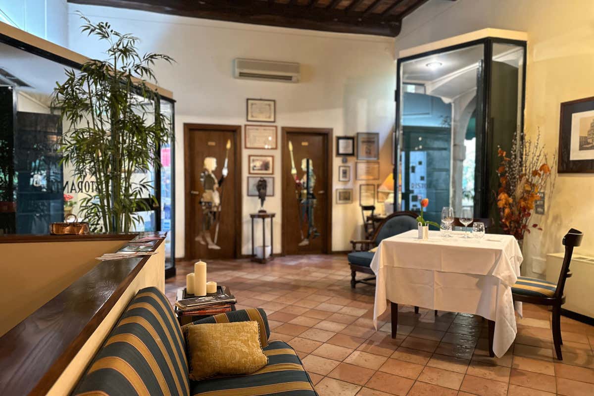Dopo una bella passeggiata tra piazze, chiese e viuzze è tempo di passare alla parte enogastronomica della nostra gita lucchese. Cominciamo da un pezzo di storia del centro città: l’antichissima Locanda dell’Angelo, nome ereditato dal Convento di San Michele Arcangelo e risalente forse addirittura al 764 d.C. È cosa certa che dell’Hostaria dell’Angelo si hanno notizie certe già dal 1414, i documenti parlano di una locanda con posti letto e con una taverna che si affacciava (allora come oggi) su Via di Pescheria. A riprova di una storia ancestrale, al piano di sotto del locale - durante alcuni lavori di restauro - sono stati portati alla luce reperti risalenti all’alto Medioevo.