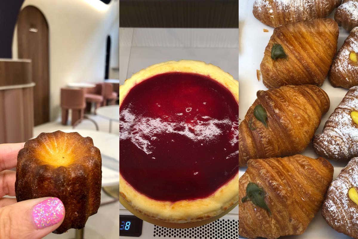 Decido che il mio viaggio di degustazione farà tappa in due città del cuore, New York e Parigi. Perchè? Non ho segreti e vi confesso che a New York ho ambientato il mio primo romanzo giallo sulla pasticceria e a Parigi, capitale del dolce e che mi ha rapito palato e cuore, il secondo giallo in uscita. Opto dunque per un classico cheesecake ai lamponi per fare idealmente due passi a Central Park e poi immaginandomi fra le vie di Parigi, un canelès e un croissant alla crema.