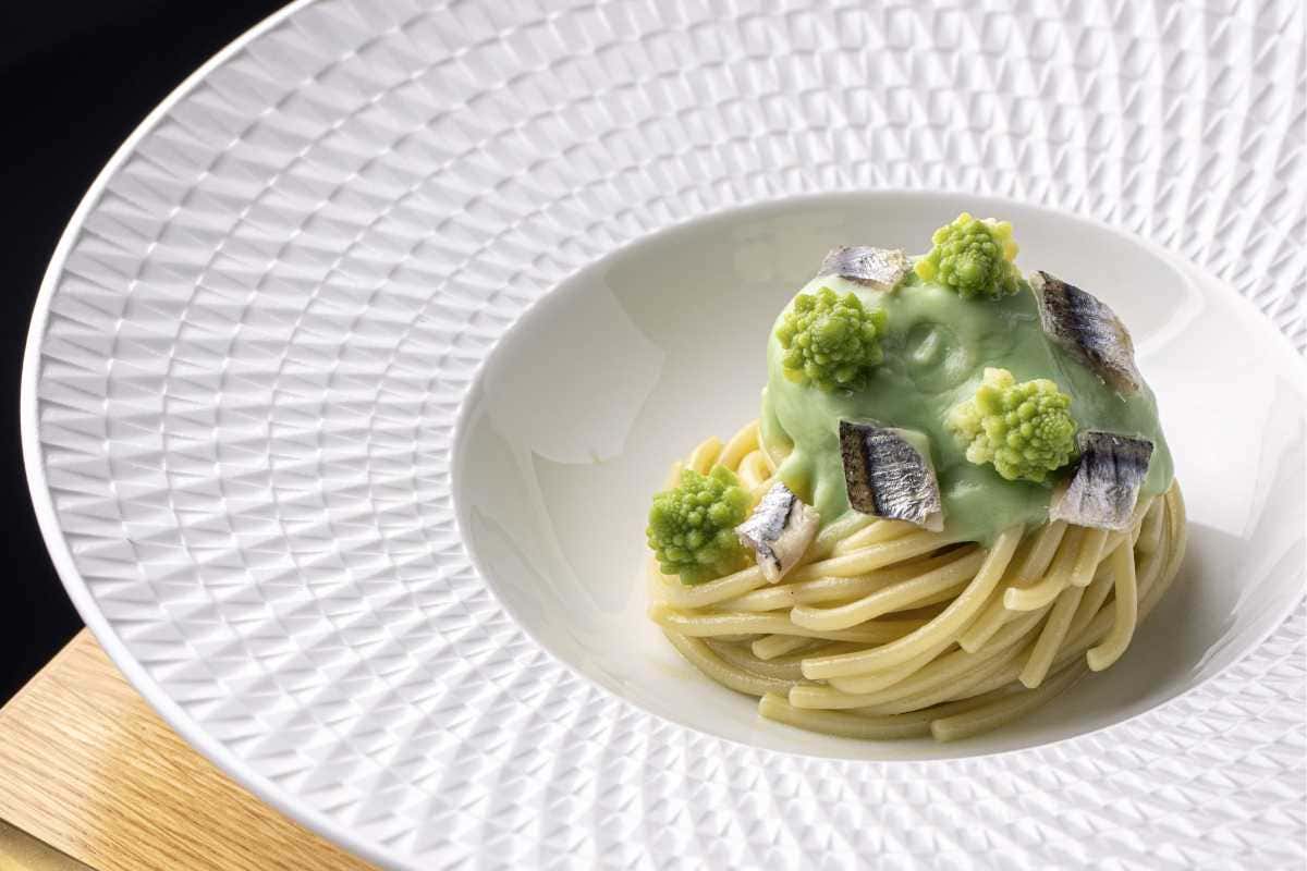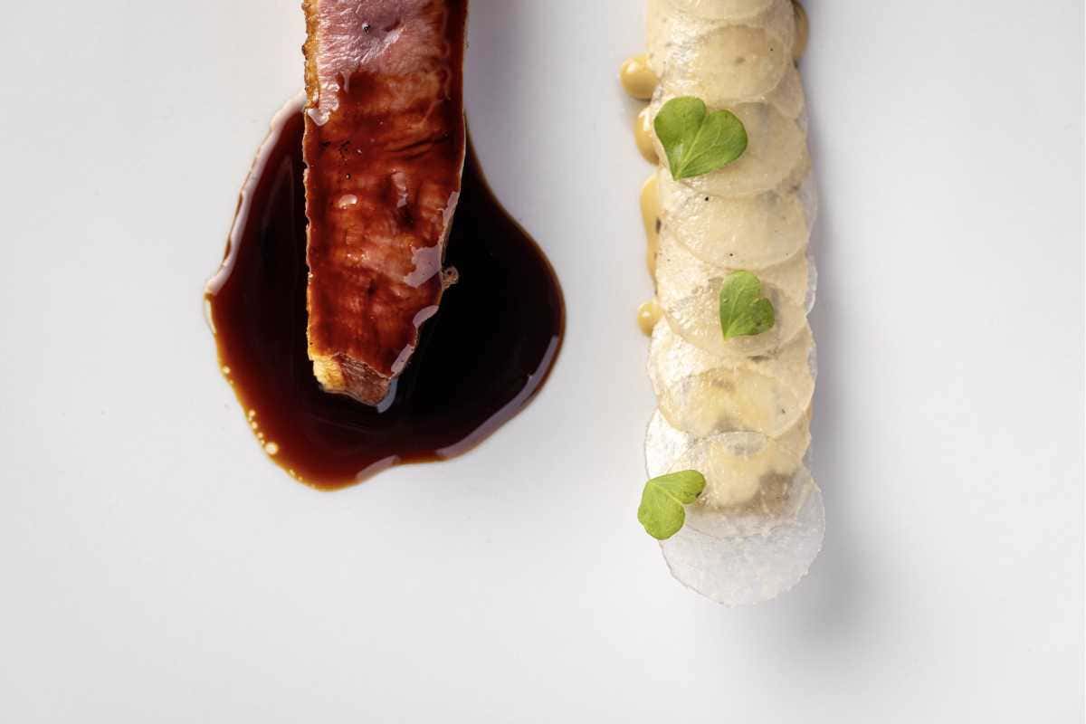 Cominciando dagli antipasti, il must è l’animella tonnata, una reinterpretazione del tipico piatto piemontese che sorprende con ingredienti insoliti e una combinazione di sapori che include il gel di sidro e le due consistenze del cappero. Lo spaghetto broccolo e alici invece rappresenta il legame tra gusto moderno e tradizione: si tratta di un’accurata lavorazione che va ad esaltare il valore autentico degli ingredienti e rievoca così un sapore caro alla memoria del palato. Ci si imbatte poi nei secondi piatti, con proposte come l’anatra con porro e daikon, un omaggio ben riuscito all’autunno e alla tradizione della cacciagione: una lavorazione semplice che dà vita a sapori decisi e contrastanti grazie alla presenza del porro, della maionese stout e alla sapidità croccante del daikon.
