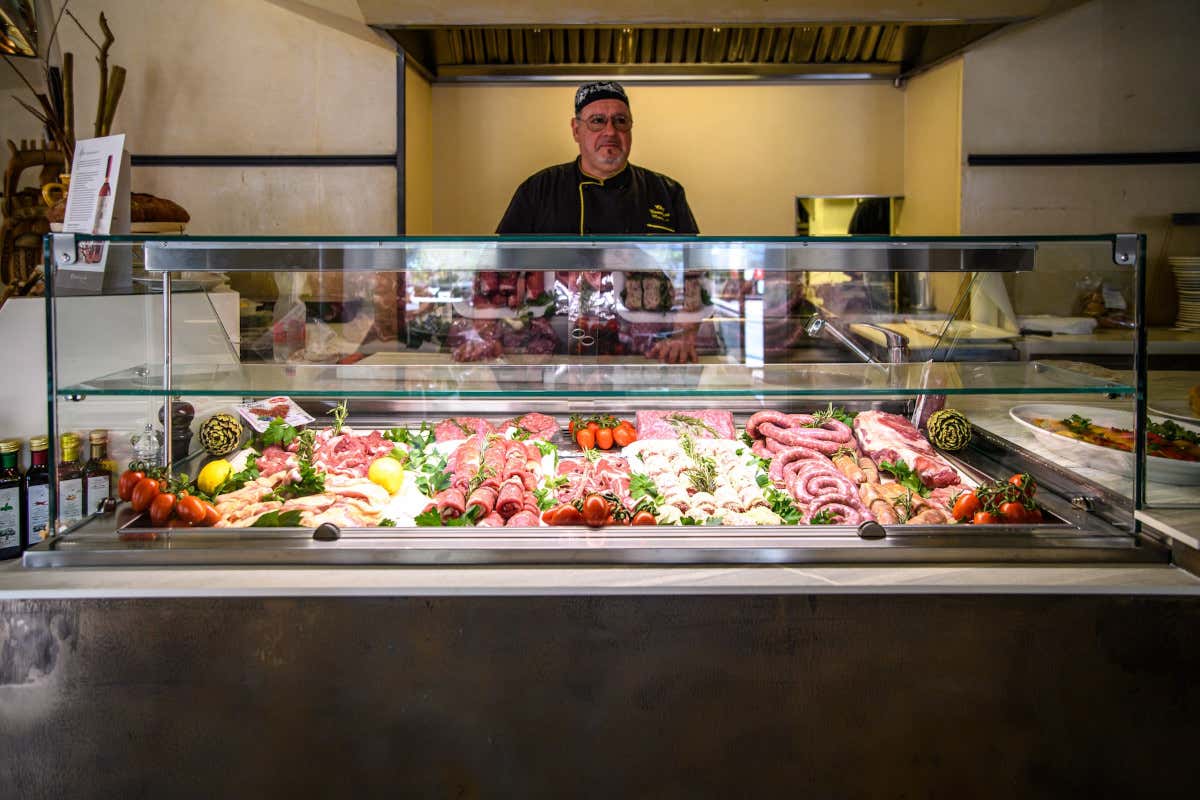 Alle due sale interne si aggiunge (si arriva a 180 coperti fra dentro e fuori) lo spazioso dehors vetrato, con l’appetitoso buffet a vista: i carciofi, la Parmigiana di melanzane, le Lasagne della domenica con uova e polpette, le Pittule appena fritte, il Pane di Altamura, i salumi e i formaggi meridionali. La novità o il ritorno alle origini, dipende dai punti di vista, è la cosiddetta “Braceria della pizzica salentina”. La griglia a vista è posta dietro un ricco bancone gastronomico, l’altare dei piaceri della carne ove trovare le amate “Bombette di Cisternino” lavorate a mano con broccoli alla Salsiccia con rape ‘nfocate, la Costata di asina o puledra, la Tartare di puledrina condita con ricotta di pecora, cipolla caramellata, capperi e uova, le Costolette (di maiale o di agnello) ed infine la Grigliata mista salentina, che mette tutti d’accordo. Ma inedito è pure il “Roll in Pizza”, ossia pasta lievitata arrotolata su sé stessa ad accogliere diverse combinazioni di ingredienti, per poi essere fritta e asciugata in forno, e infine tagliata a rotelle.