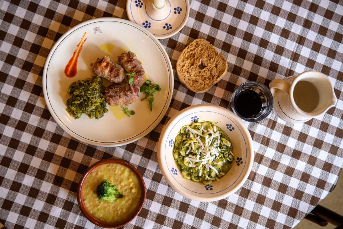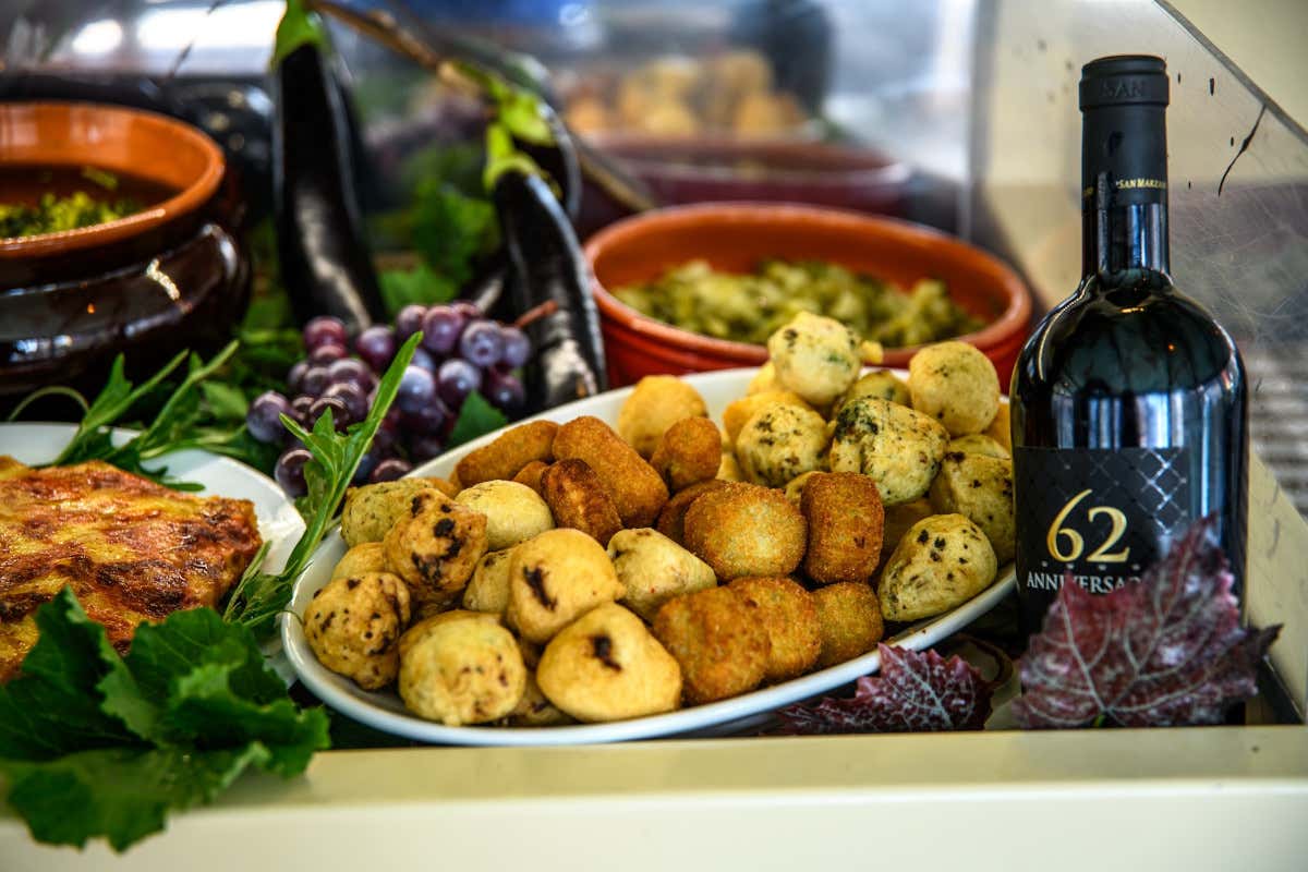 Ma anche il vino pugliese, in crescita costante dal punto di vista qualitativo (perché a livello quantitativo è da sempre in cima alle classifiche italiane), riceve le giuste attenzioni: per l’antipasto e i primi abbiamo sperimentato un ottimo Primitivo Rosé di Paolo Leo, e in abbinamento alla carne un Primitivo Teanum, della provincia di Foggia, opulento e setoso, con note di frutta sotto spirito e frutta secca, prevedibili ma non banali.