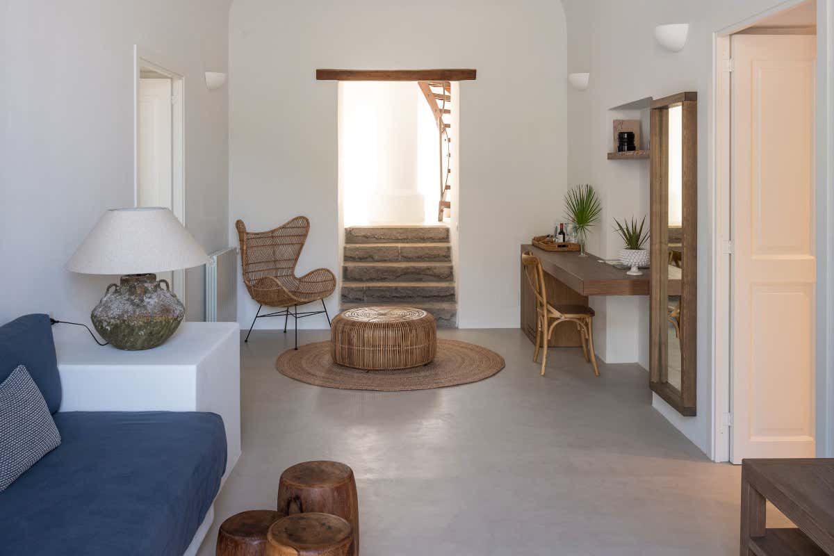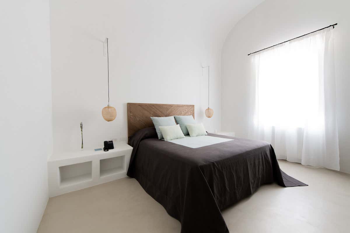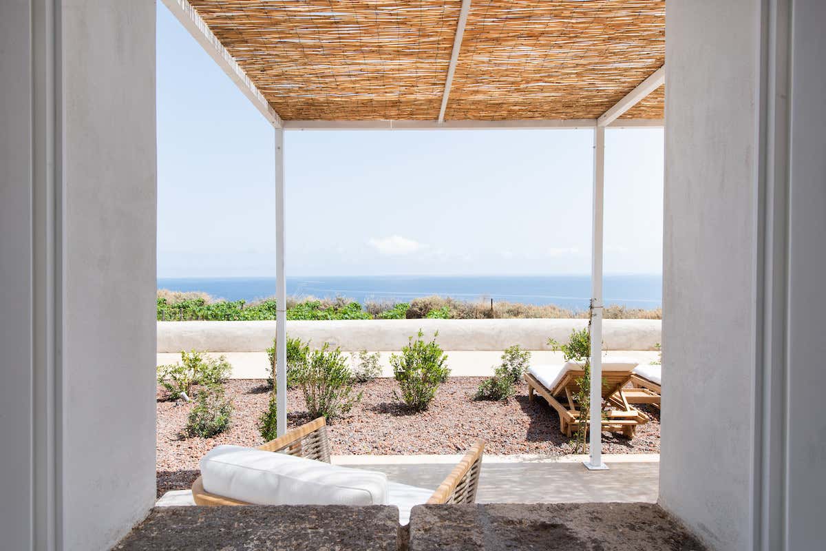Le suite, da 30 e 50 mq, sono dotate di giardino privato e ingresso indipendente, mentre la più grande, da 80 mq, al centro del complesso, si estende su due livelli ed è caratterizzata da un affaccio doppio e da una terrazza panoramica con una vista mozzafiato sul mare, i vigneti, gli orti e i giardini. Nel progetto d'interior - dagli arredi realizzati su disegno fino alle scelte di materiali locali, di arredi e tessuti - MAB Arquitectura ha privilegiato il carattere sobrio e funzionale dell'architettura eoliana tradizionale.