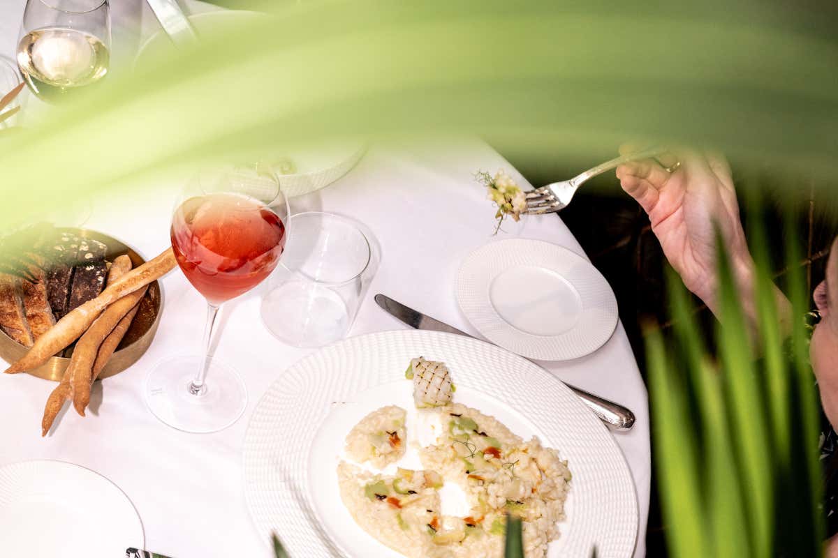 Accanto ai piatti ormai signature, insostituibili poiché firma della personalità gastronomica del Caruso Nuovo Bistrot, si affiancano le proposte del menu primaverile, con un occhio di riguardo alle sfumature del verde e alle primizie di stagione. Tra queste un’insalata di mare contemporanea, con salsa di lattuga, acqua di pomodoro, e diversi pesci con molteplici cotture, ma anche - tra i primi - Come un risotto a primavera, nelle intenzioni degli chef un’ode ai vegetali e ai sapori freschi e profumati di questa stagione in cui l’estrazione di asparago bianco, le fave, i piselli, gli asparagi, vengono completati dal succo concentrato di arancia che dona una spinta frizzantina al piatto.