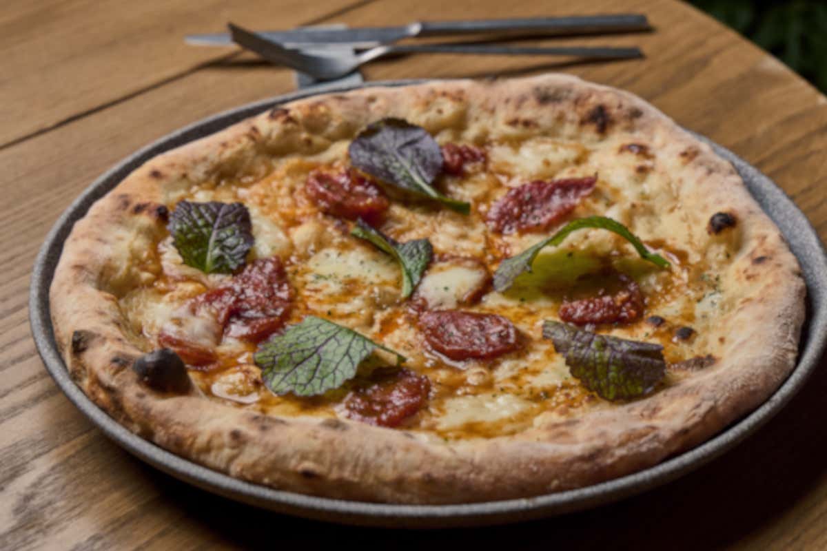 La pizza invece utilizza un impasto diretto, una lunga lievitazione che permette di fondere gusto e digeribilità. Il risultato è leggermente più croccante, senza l'ossessione di cornicioni troppo pronunciati, viene proposto anche un impasto gluten free. Le varianti delle pizze abbracciano sia grandi classiche leggermente riviste in modo contemporaneo (come ad esempio la Capricciosa con Pomodoro San Marzano, fiordilatte, carciofi arrosto, cotto Capitelli, cardoncelli, terriccio d'olive, olio evo e basilico), sia vegane, sia signature che partono dal principio di portare sulla pizza ingredienti con la loro cottura ideale, come se si stesse assemblando un piatto. Un esempio? Pecorino, crema di zafferano, ossobuco arrosto, gremolada e caviale.
