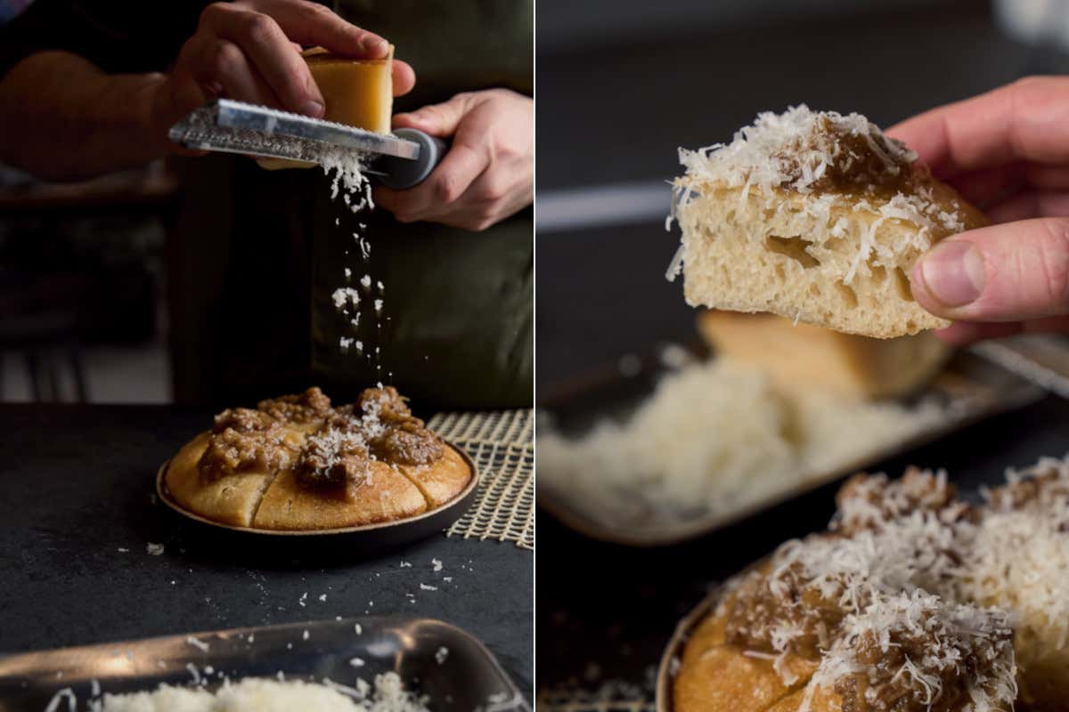 La filosofia della cucina è quella di abbracciare una proposta italiana contemporanea, sia di essere a sostegno della pizza. L'offerta si arricchisce e si allarga anche ad altro: mondeghili e frico, le montanari crunchy con nuda e friarielli o in versione vegana con barbabietola marinata, mozzarella di mandorla ed erbe, bites sharing come le focacce con gamberi crudi, foie gras ed erbe oppure con pastrami, pickles e rafano. I dessert invece virano su grandi classici come la tarte tatin alle mele con gelato alla vaniglia o i tradizionali tartufi al forno del Sud, realizzati in una chiave più leggera. Curiosa e intrigante la drogheria con salumi, formaggi, conserve marine e preparazioni veggy, accoglie meravigliose sfiziosità che possono essere gustate come aperitivo da condividere o aggiunte come ingredienti alla pizza.