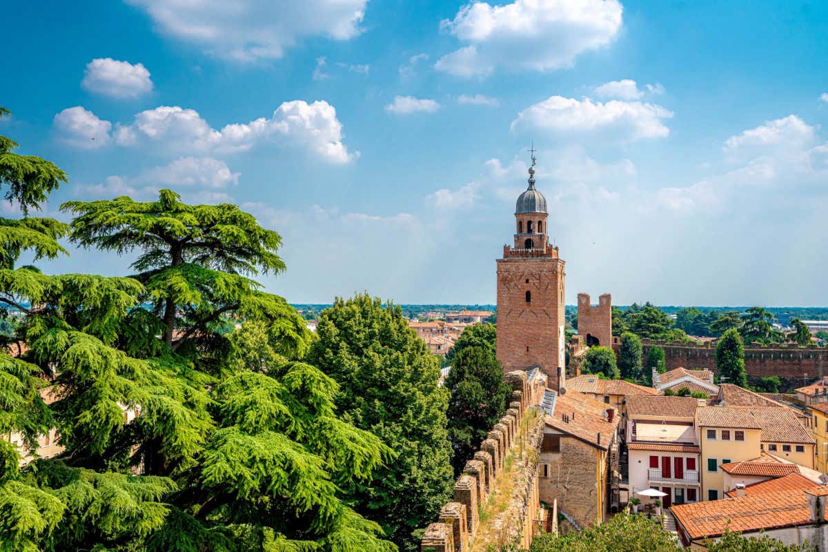 Il suo elemento più rappresentativo è il Castello, protetto da una imponente cinta muraria di mattoni rossi a base quadrata che racchiude il borgo antico. In piazza Trento Trieste svetta l’imponente Torre Civica (alta 43 metri), una delle sei ancora presenti, che esibisce sulla facciata principale l’orologio con il grande quadrante azzurro ed il Leone di San Marco, entrambi voluti dal podestà Pietro Gradenigo nel 1499, per testimoniare il dominio veneziano sulla città.