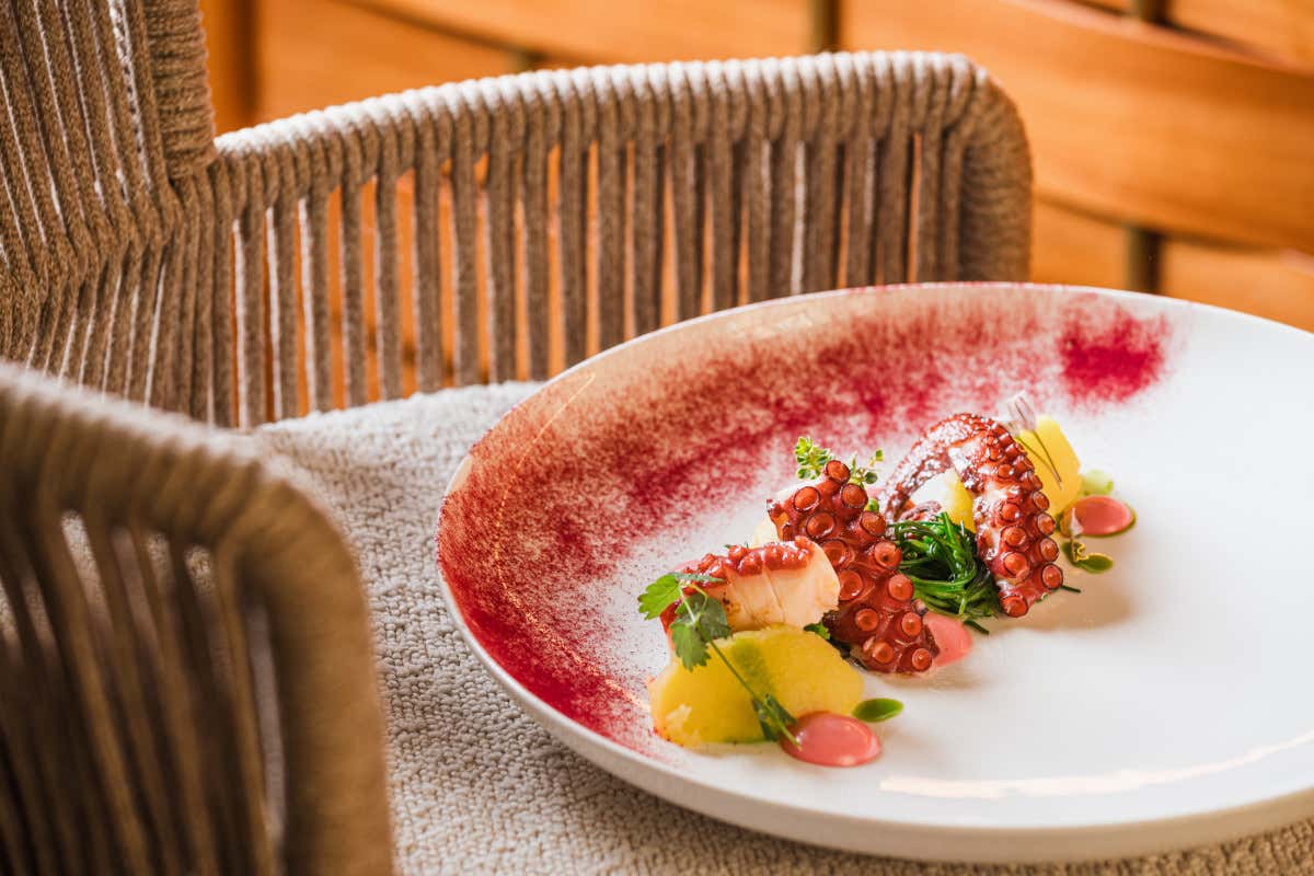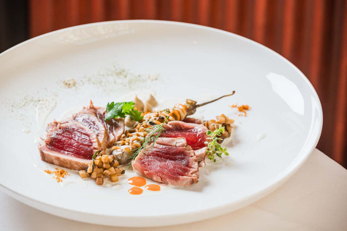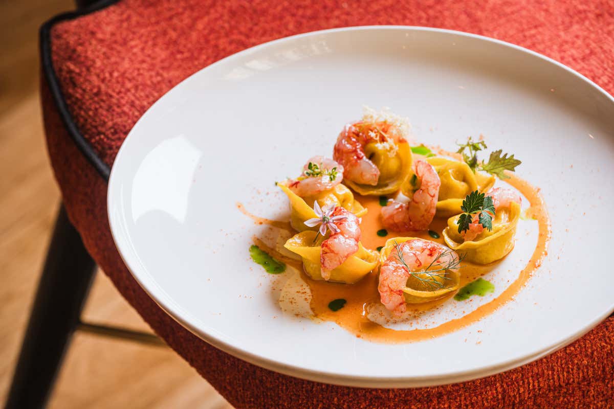 «Ho scelto di proporre una carta che porti in tavola i grandi classici della cucina di mare, le cotture delicate e i grandi crudi. Amo costruire i sapori per stimolare le papille gustative e quando questo accade il divertimento è da entrambe le parti», racconta lo chef. Esempio di questo pensiero la Catalana, pura espressione del Mediterraneo con pomodoro datterino, cipolla di Tropea, basilico spezzato a mano, patate di Avezzano, gambero cotto al vapore e olio extra vergine, tutti prodotti semplici che parlano della nostra penisola. Altro piatto dall’apparente semplicità sono le Linguine con i ricci, la cui realizzazione non può prescindere da una sapiente scelta della materia prima che qui viene accompagnata con le nocciole. Il connubio è utile non solo per completare la grassezza dei ricci ma anche per creare un gioco di consistenze che frena, con la croccantezza della nocciola, quella scivolosità propria della linguina stessa. Ma tra i primi meritano attenzione anche i paccheri al sugo di pesce di scoglio o il risotto alla crema di crostacei senza tralasciare il pescato locale che può essere servito nella cottura preferita dall’ospite, al sale, alla griglia, al guazzetto, alla mugnaia, al forno.