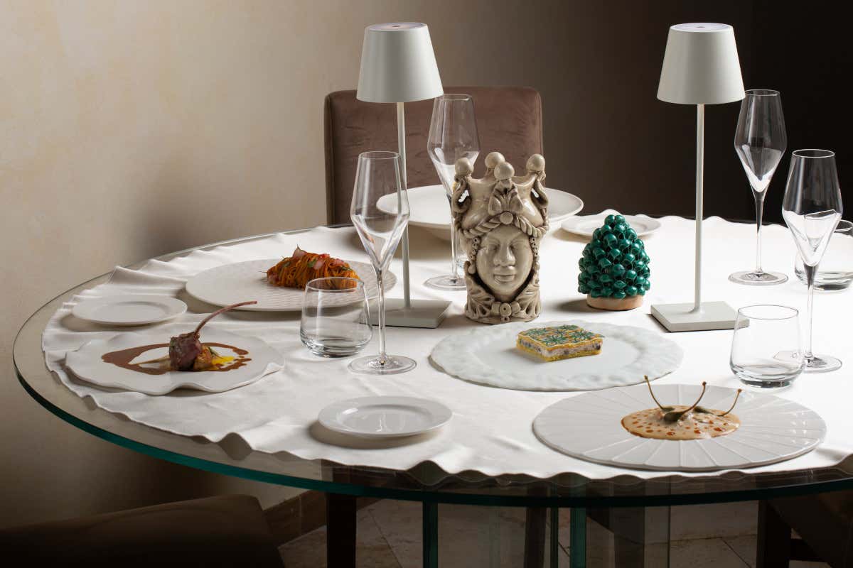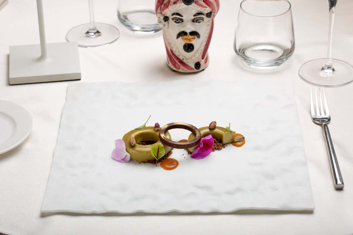 Ricordi prettamente isolani solleticano la mente grazie anche a idee suggestive che chef e brigata (composta dal sous chef Alberto Barbato, in cucina insieme a Filomena Calia, e dalla pastry chef Letizia Mariangeli) partoriscono insieme: «Quando non siamo in servizio - racconta lo chef Benvenuto – ci ritagliamo del tempo per lavorare insieme a nuove proposte. Parliamo, ci confrontiamo, cuciniamo. Ci piace partire da un pensiero, magari da un’abitudine, o da un mio ricordo personale». Nascono così piatti come A granita ca brioscia, la versione salata di una buona colazione siciliana, con uovo perfetto, spuma al Grana Padano, granita al caffè e la brioche siciliana che diventa cucchiaio. O, ancora, Omaggio a papà, un piatto simbolo dei 40 anni di carriera del padre di Cristian.