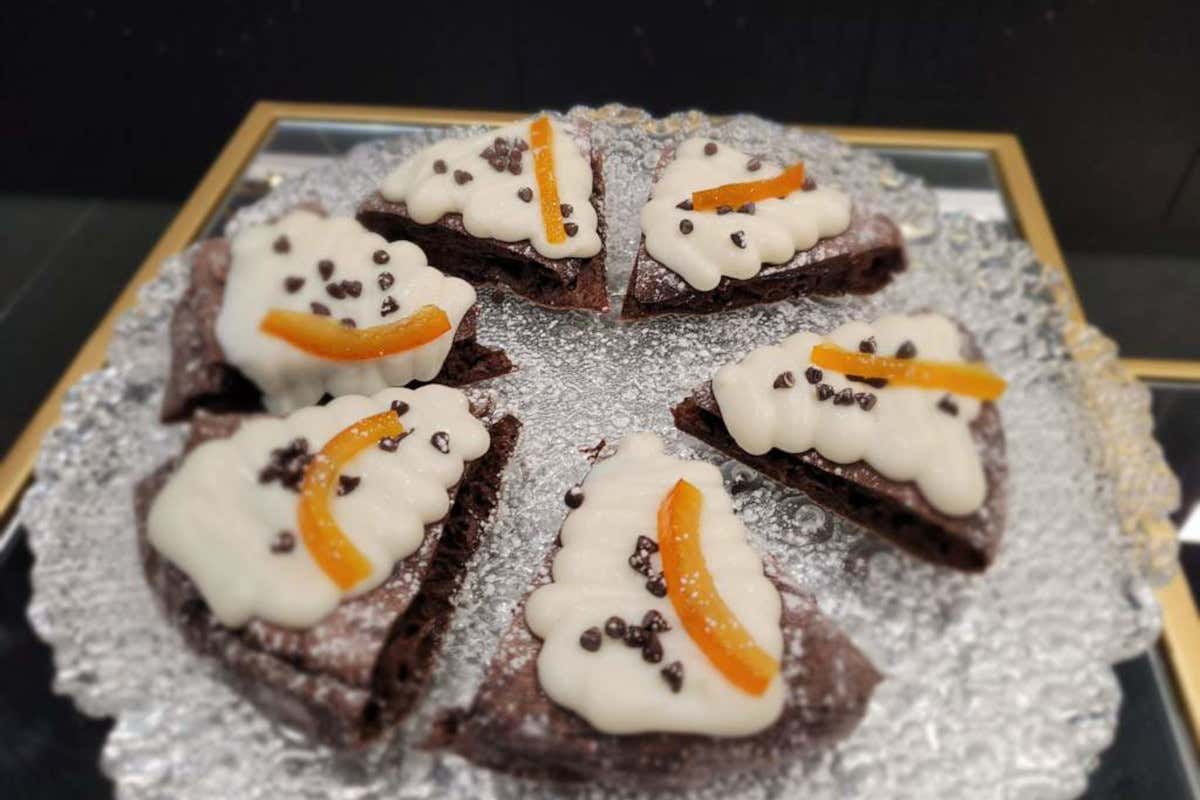 Ultima pizza (parliamo di spicchi, beninteso!), la Ruota di carro con provola e pepe. La provola è quella bufalina, il pomodoro è il San Marzano dell’Arno Sarnese Nocerino Dop. Anche questa pizza, parimenti alle altre, è proprio di grane bontà! Anche con il dolce, la bufala è presente. Presente nella sua versione “latticino”: la Ricotta di Bufala Campana Dop è l’ingrediente principale dello squisito Padellino dolce al cacao, dove ci sono tocchi appropriati di granella di cioccolato e bucce di arancia.