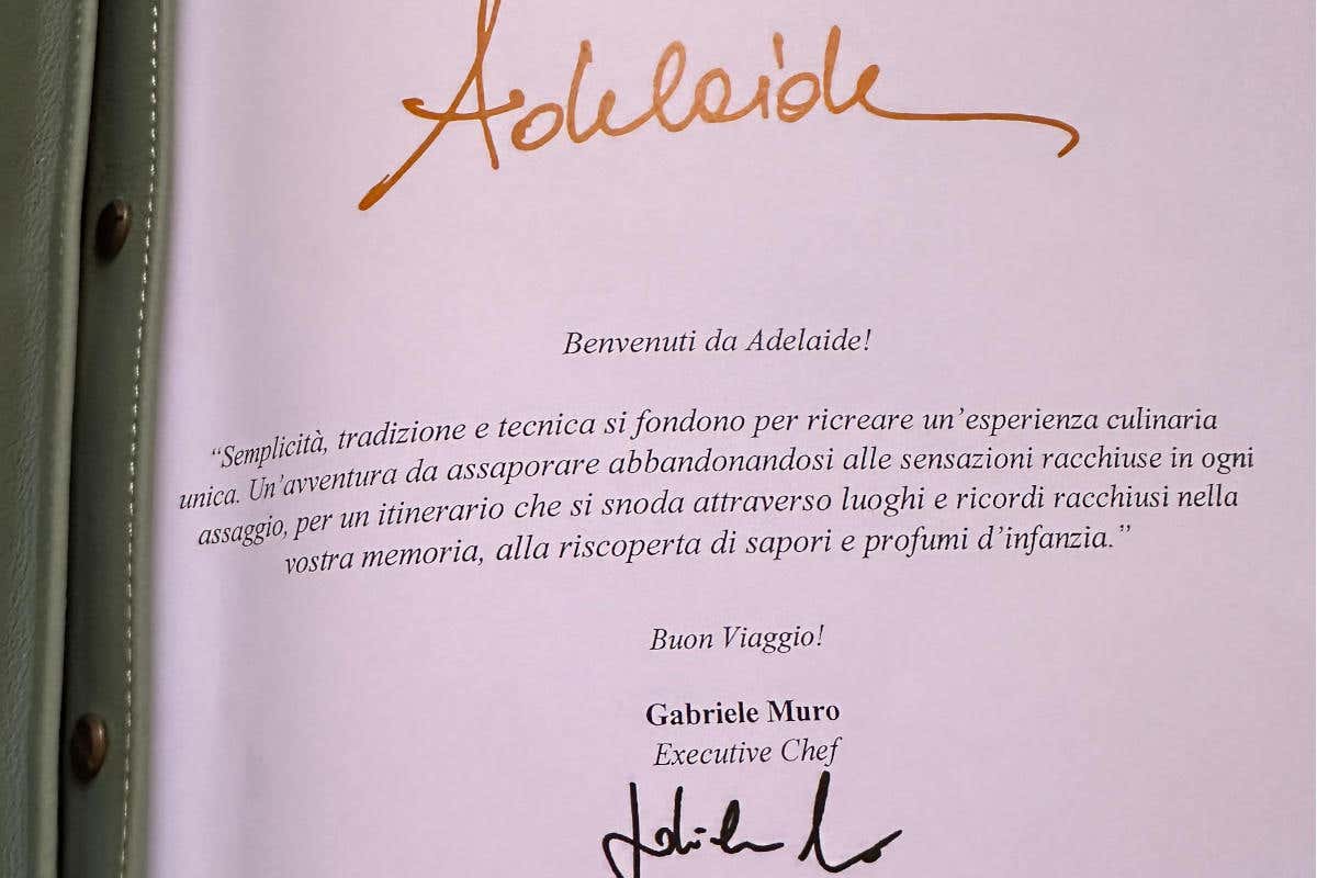 Il menu di Adelaide celebra concretamente la cucina italiana, con un'attenzione particolare agli ingredienti di alta qualità, alla stagionalità e ai sapori del centro-sud. Ogni piatto è pensato per offrire un'esperienza sensoriale completa, dal gusto all'olfatto, fino alla vista. E non potrebbe essere altrimenti visto il contesto in cui si trova, dove lo stile è il leit motive dell’albergo e del gruppo a cui fa capo.
