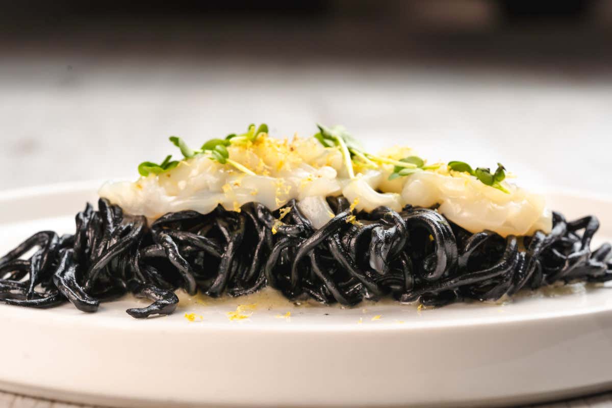 Tagliolini al nero di seppia con capesante de La Piazzetta