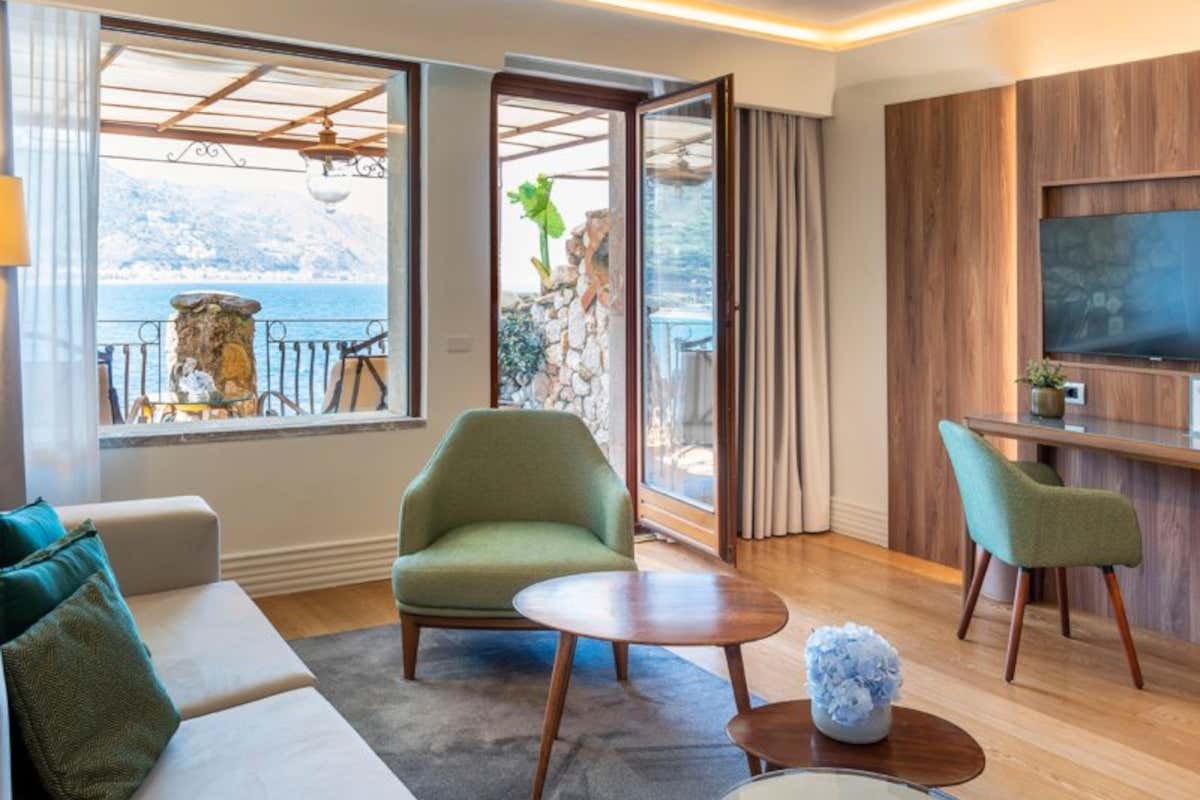 Le Suite Executive Vista Mare, spaziose e moderne, presentano decorazioni eleganti, pavimenti in legno e marmi bianchi, e una terrazza privata arredata con viste mozzafiato che rendono ogni momento indimenticabile. Infine, immergiti nell'esclusività della Suite Atlantide, che include una terrazza panoramica, una piscina privata, Jacuzzi, Hammam, angolo bar e tessuti di lusso, offrendo una delle sistemazioni più prestigiose di Taormina per un soggiorno indimenticabile.