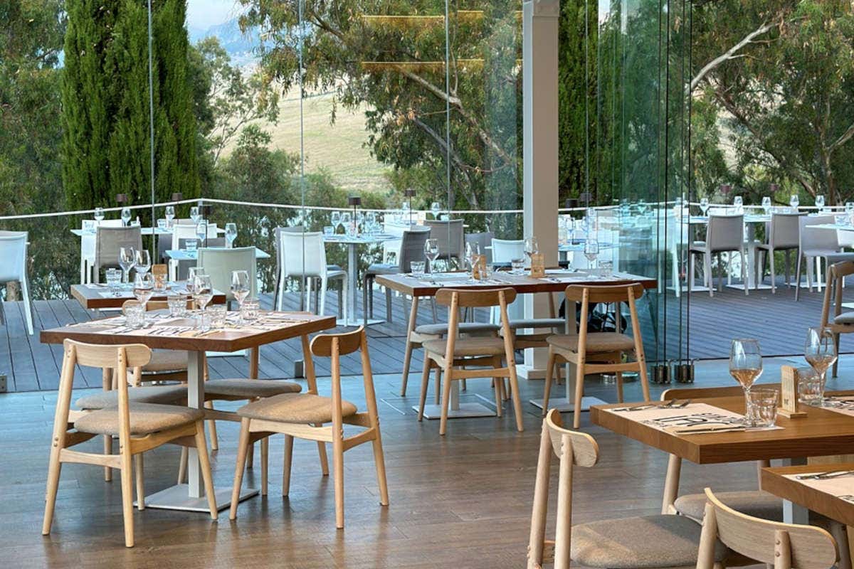 Gli ampi spazi interni sono arredati con eleganza, utilizzando materiali locali e colori che richiamano la natura circostante. Il senso di tranquillità e la temperatura fresca durante le sere d’estate rendono il ristorante la scelta ideale per una cena romantica o un luogo per una serata conviviale con gli amici o la famiglia