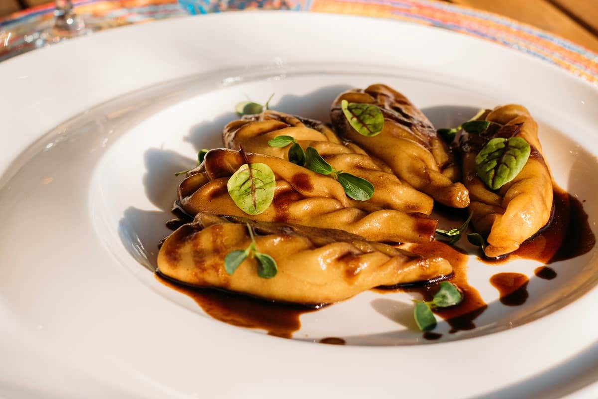 Casa Carmen: Culurgiònes ripieno di patate pecorino e menta con fondo di manzo