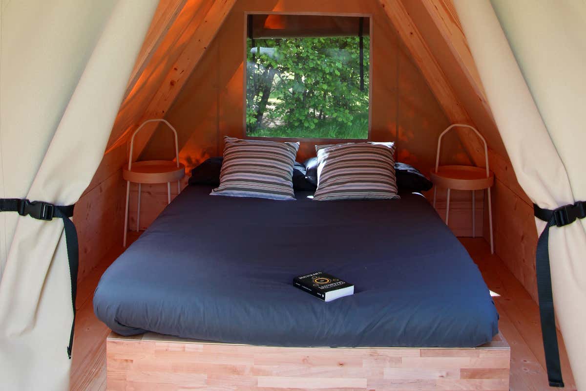 All’esterno troviamo il campo di pallavolo sull’erba, il ping pong tra gli alberi e una zona barbecue di design. Senza dimenticare il noleggio di biciclette e un ricco calendario di attività per tutti: dai laboratori in natura per i più piccoli alle sessioni mattutine di yoga nel parco seguite da merende di frutta fresca e succi, alle esplorazioni delle stelle nel cielo notturno. Piccole chicche che rendono ancora più comodo il campeggio il piccolo minimarket e un’ambulante che due mattine a settimane vende frutta e verdura fresche. Una mattina a settimana, invece, si può acquistare il miele di un produttore locale.