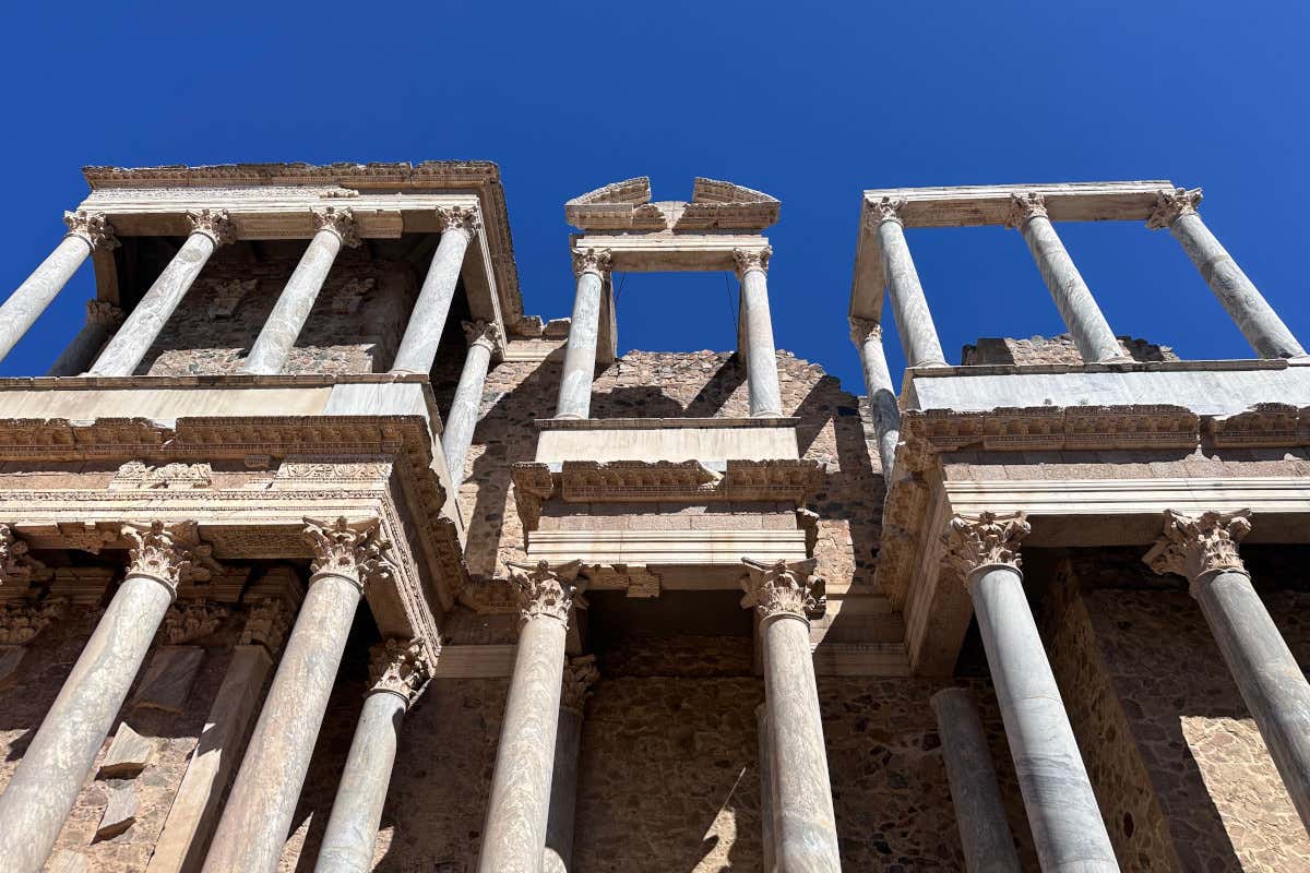 L’edificio più rappresentativo è senza dubbio il Teatro Romano, ancora in uso dopo 2mila anni. Costruito nel 15-16 a.C. per volere di Marco Vipsanio Agrippa è stato ristrutturato più volte, la prima intorno al 105, durante il regno di Traiano, e un'altra al tempo di Costantino I, tra il 333 e 335. La distruzione ad opera dei visigoti e il conseguente abbandono hanno preservato di fatto colonne e capitelli, perché l'edificio era coperto di terra, e per secoli la sua unica parte visibile rimase la summa cavea, la parte superiore, chiamata dagli emeritensi "Le sette Sillas" (le sette sedie). Dal 1933 il teatro è sede del Festival internazionale del Teatro Classico, con interruzioni dovute alla guerra e al periodo della dittatura, e dal 1993 è Patrimonio mondiale dell’Umanità per l’Unesco.