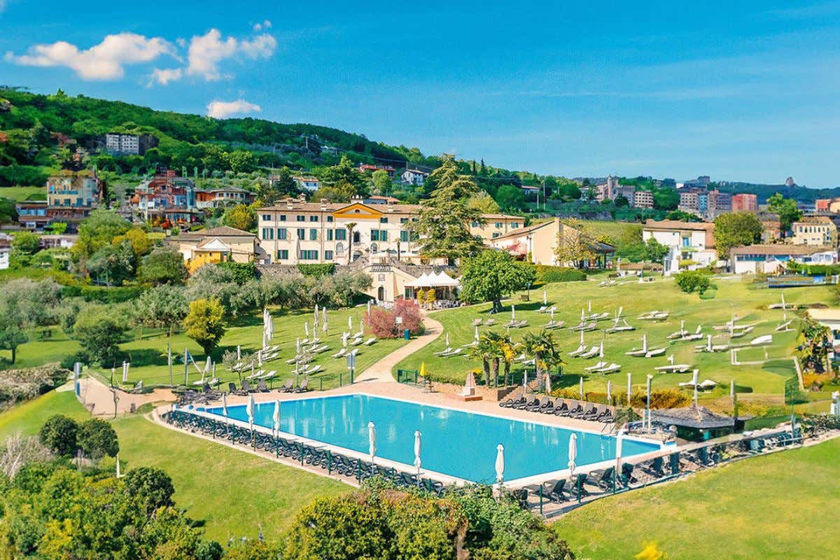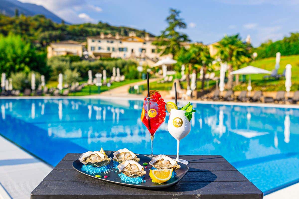 Ma non è solo la terrazza a rendere Villa Cariola un luogo esclusivo: la superlativa piscina, immersa in 8 ettari di parco, offre un rifugio per chi cerca relax e tranquillità. Immagina di fare un tuffo e prendere il sole in un angolo di paradiso, circondato dalla bellezza naturale delle colline del Lago di Garda. Un’esperienza che non può essere descritta a parole, ma deve essere vissuta intensamente. E per chi desidera coccolarsi ulteriormente, il Pool bar è pronto a soddisfare i palati più esigenti con proposte enogastronomiche di alta qualità, rendendo ogni momento trascorso in piscina ancora più speciale.