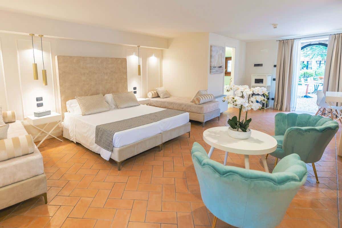 Da 40 m². L’hotel Villa Cariola dispone anche di eleganti Suite, accoglienti ed esclusive, che possono ospitare fino a 4 persone grazie all’ampia metratura. Gli arredi ricercati dai toni pastello trasmettono una sensazione di armonia e calda ospitalità.