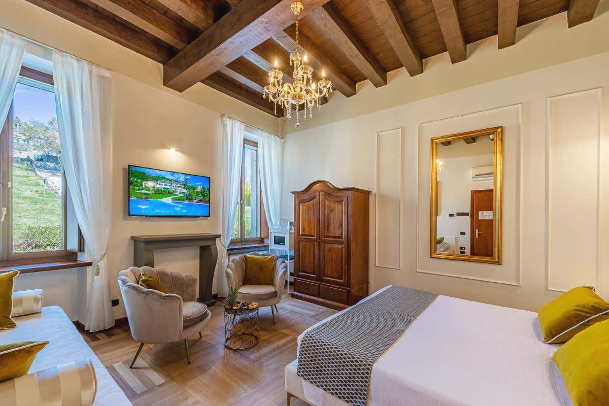 Da 25 m². Iconiche, grazie ai caratteristici camini, le Junior Suite di Villa Cariola, situate nelle antiche sale nobili della villa, uniscono al fascino e all’eleganza la capacità di far sentire a casa i suoi ospiti.