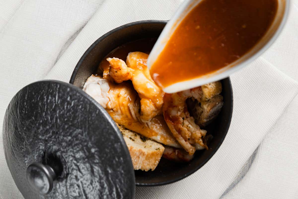 Gramfish gallinella coda di rospo scampi gamberoni e la loro bisque de Il Gramsci