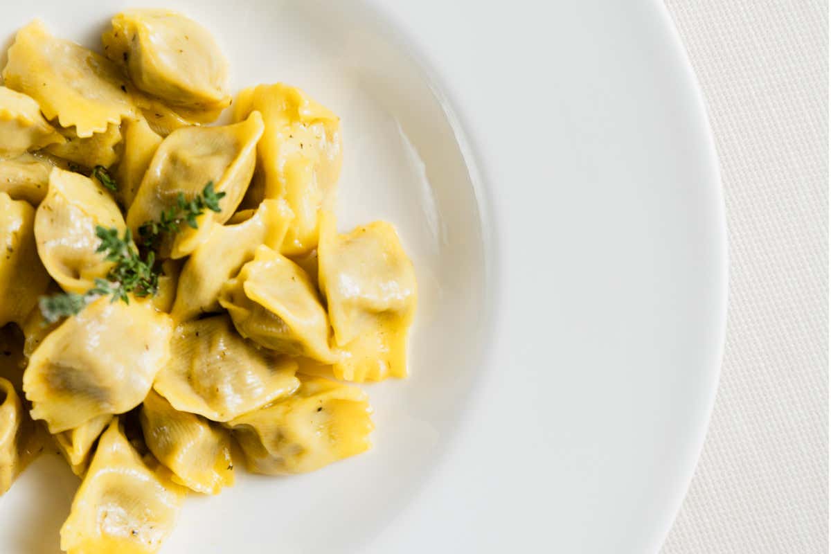 Ravioli alle tre carni fatti a mano, fondo bruno e timo de Il Gramsci