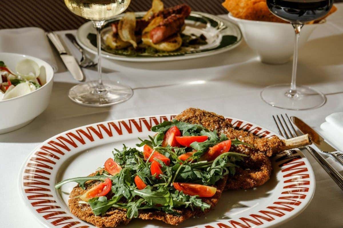 Il menu è realizzato con la consulenza dello chef Andrea Berton e include i grandi classici come la “Parmigiana di melanzane”, "l'Arancina alla milanese ripiena di ossobuco e gremolada”, gli “Spaghettoni alla Nerano con provolone del Monaco” e i “Pici fatti in casa al ragù”, mantecati direttamente al tavolo, con l'obiettivo di valorizzare la gestualità del servizio. Ne sono un esempio anche la porzionatura del “Pescato del giorno”, che avviene come nei più storici ristoranti italiani, e il taglio del “Salame di cioccolato”, affettato e servito con pan brioche e panna montata. La pizza proposta è “scrocchiarella”, di quella che fa tornare indietro nel tempo fino alle merende che si facevano da bambini. Non può mancare ovviamente la "Cotoletta alla milanese", servita con rucola e pomodorini.