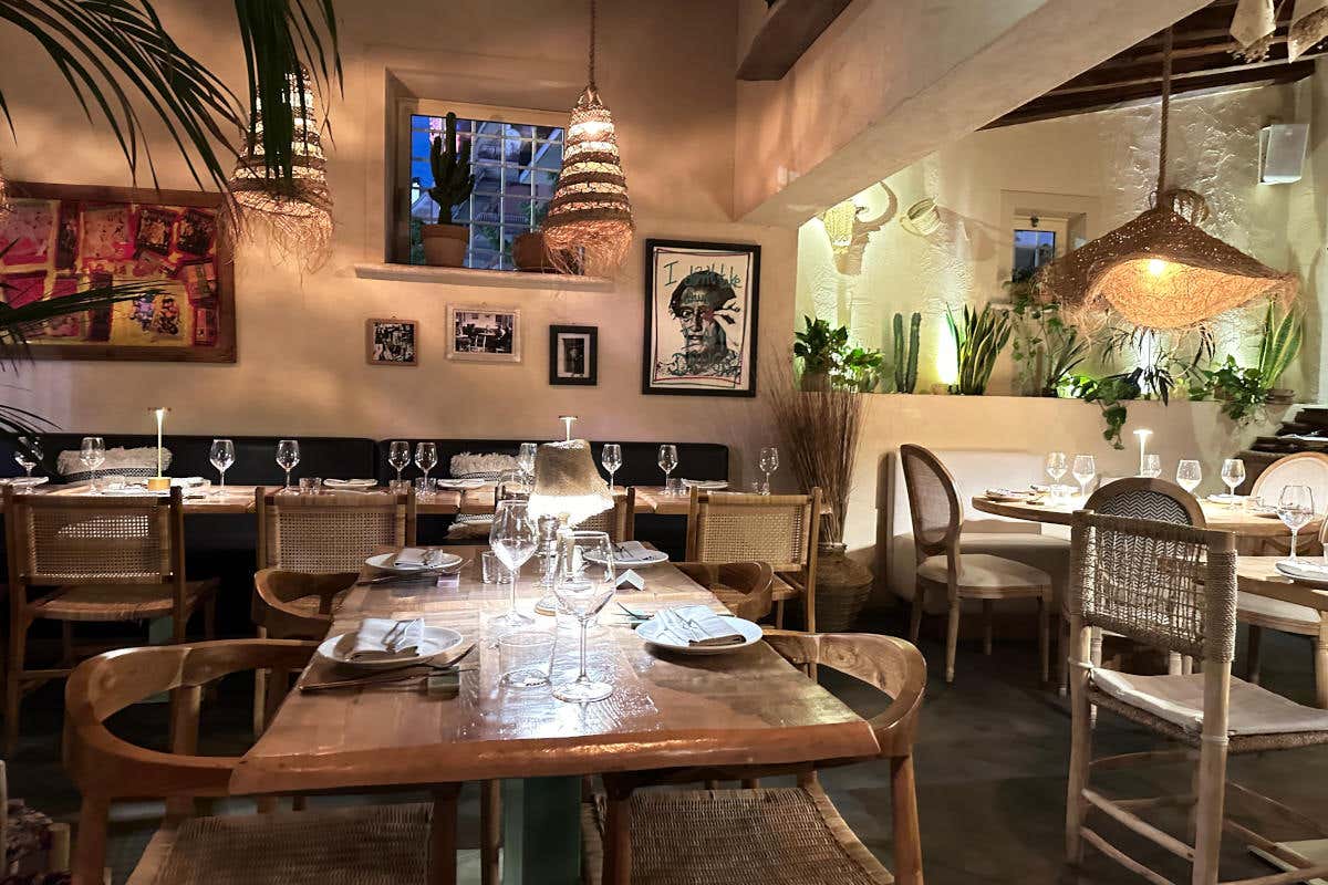 I piatti sono frutto di una tecnica quasi maniacale, ma si presentano come semplici e quasi famigliari per chi conosce un po' di cucina catalana. Le materie prime utilizzate sono di assoluta qualità e frutto di ricerca di fornitori selezionati uno a uno, ma nessun maitre o cameriere starà a tesserne noiosamente gli elogi... ci penserete voi apprezzandole, anche perché molte sono quasi introvabili persino a Roma. E che dire dell'ambiente? A metà fra il bar sulla spiaggia, il ristorantino ricercato in riva al mare o il cortile per ballare all'aperto, è coerente con i piatti e anche in questo caso è frutto di un progetto che ha spinto Riccardo e Luca a cercare e portarsi a Roma col furgone oggetti di arredo, quadri, lampade. E il risultato è come avere traslocato un pezzo di Ibiza...