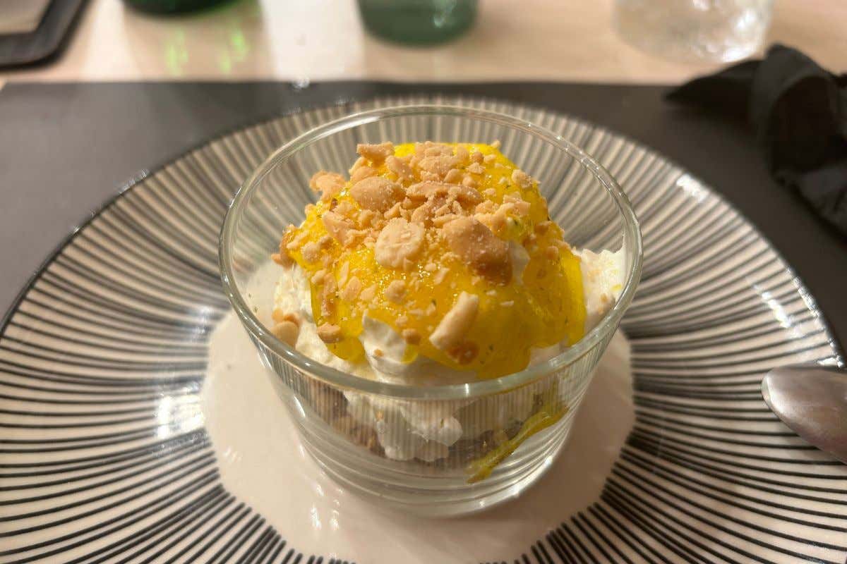 Cheesecake al limone e basilico, crumble di nocciole e arachidi