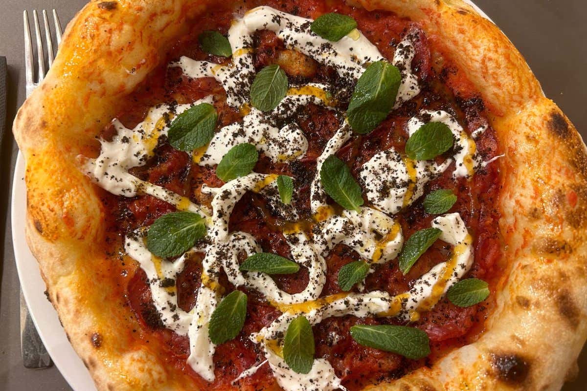 Lucifer, spianata piccante calabrese, menta, San Marzano, stracciatella, marmellata al peperoncino