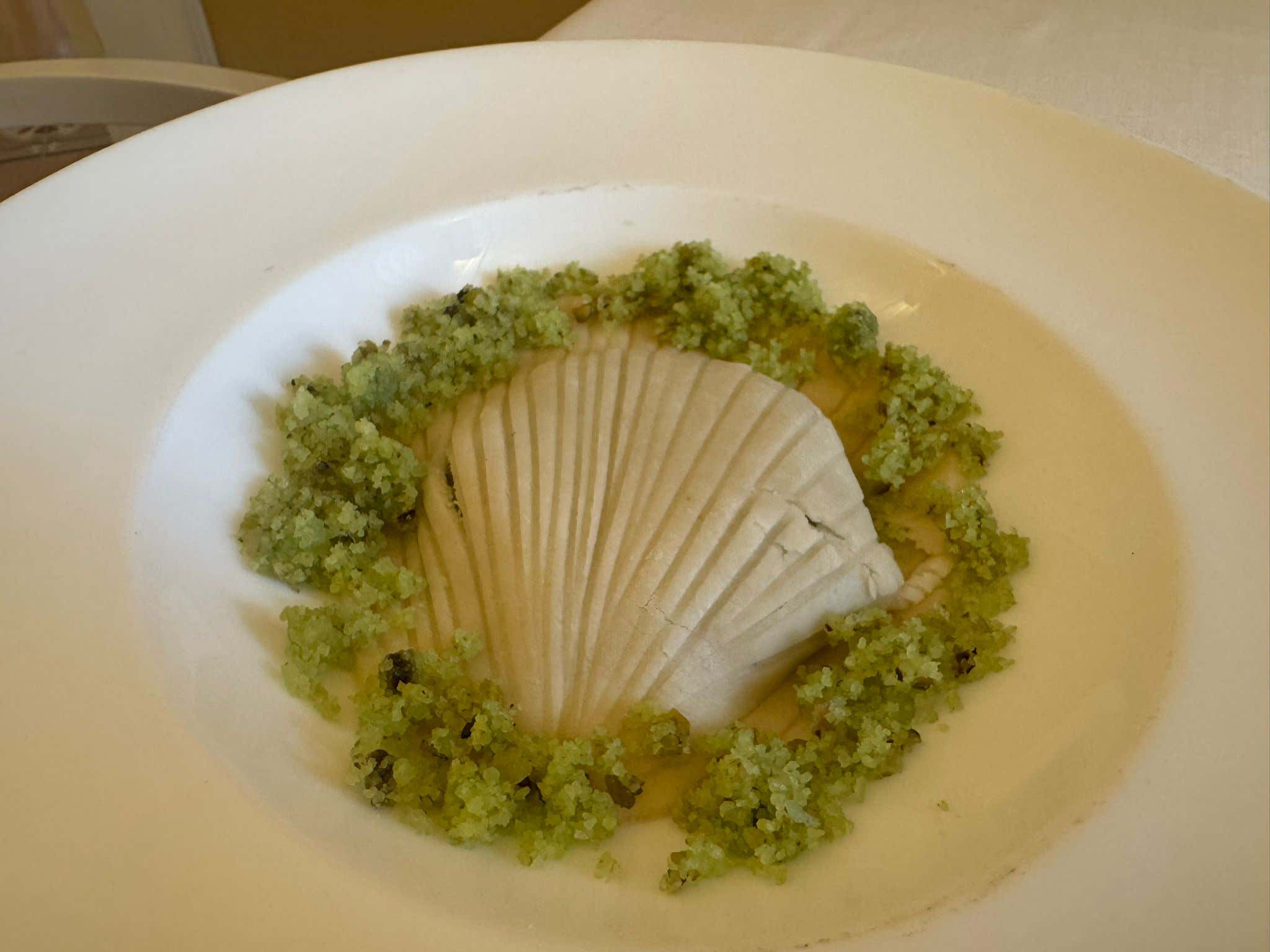 Da qui, la dedica oggi, dello chef Vincenzo Santalucia, patron del ristorante La Scala di Agrigento, nel cuore della città vecchia, a pochi passi proprio dal Monastero. Il nostro chef siciliano, infatti, ha realizzato, in occasione di Agrigento Capitale Italiana della Cultura 2025, la ricetta dedicata della Conchiglia di cassata, preparazione naturalmente dolce, dove la sfoglia esterna richiama la glassa di zucchero tipica della cassata siciliana e composta da pasta di mandorla sottilissima, che viene appoggiata sul dolce. Una sorta di velo, restando in tema di tradizioni religiose, un involucro di cous cous dolce con all’interno zuccata, pistacchio, mandorla, arancia e cannella, scaglie di cioccolato e, per concludere, anche un po’ di miele. Una prelibatezza raffinatissima, da cui trapela tutto lo stile dello chef Santalucia. Questo involucro ha all’interno la ricotta classica, con appunto le gocce di cioccolato.