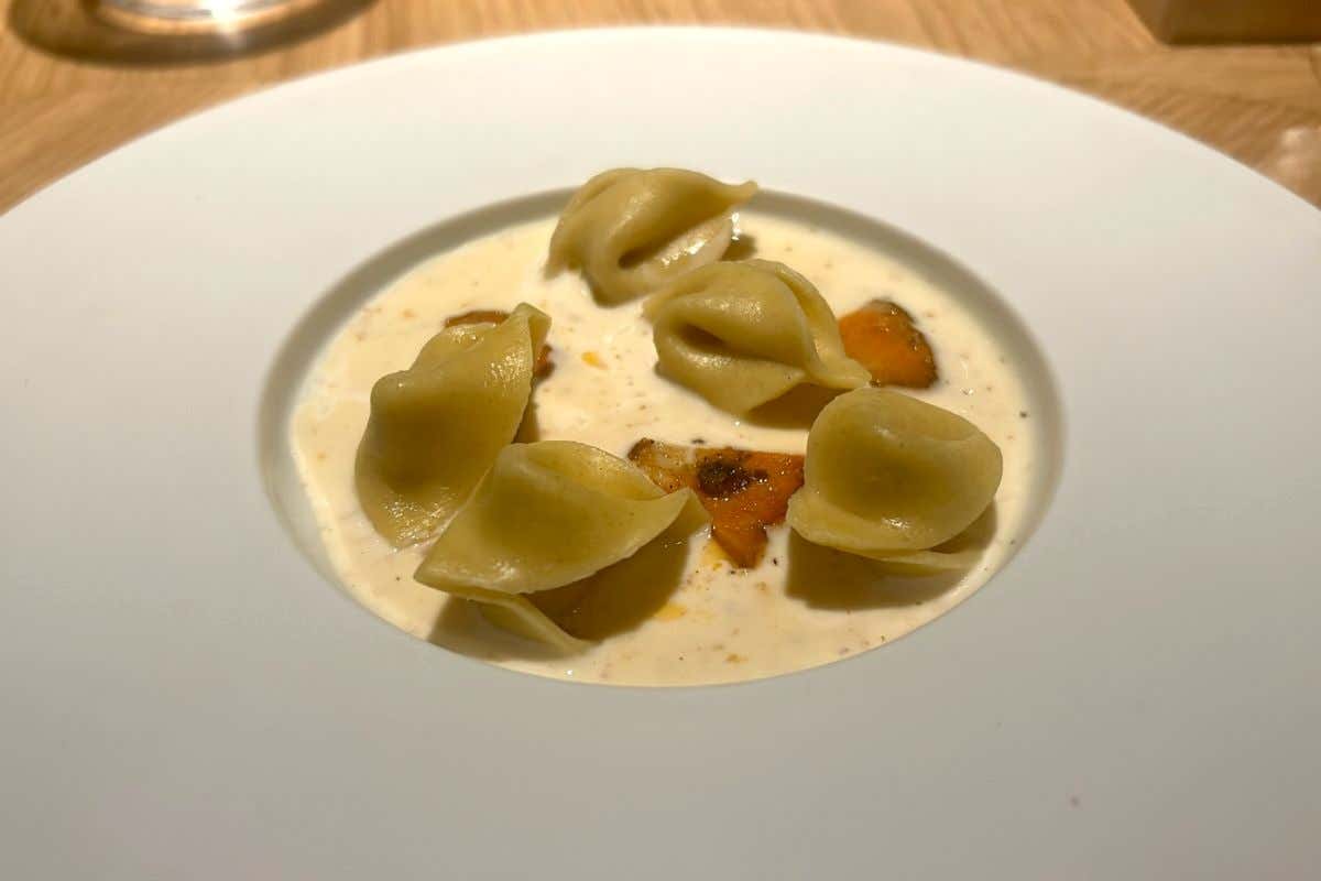 Cappelletti vuoti, panna e fegato di rana pescatrice, Trattoria Da Lucio a Rimini