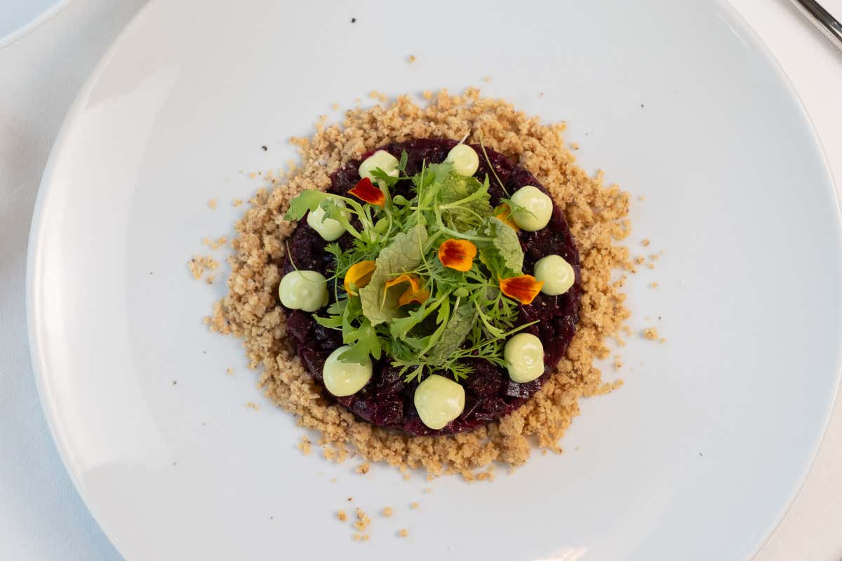 La proposta gastronomica firmata dalla chef Veronica Lora è il cuore pulsante della locanda. La sua è una cucina vegetale, immediata e concreta, che rifugge ogni esercizio di stile per concentrarsi su ciò che conta davvero: la materia prima e il gusto. Ogni piatto nasce da ingredienti biologici, scelti in gran parte da produttori locali, con verdure provenienti da un orticoltore del territorio. La filosofia è quella di un gourmet misurato, dove la tecnica non prevale mai sull’emozione. L’obiettivo è offrire una cucina accessibile ma capace di sorprendere, in equilibrio tra ricerca e semplicità. Così il menu à la carte racconta il lago e il suo entroterra con pasta fresca fatta in casa, tempeh di piselli e mandorle, tofu di semi di zucca autoprodotto, e dessert che ribaltano ogni pregiudizio sul mondo vegan.