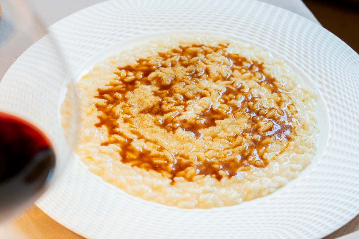 A San Silvestro l’ingresso è più conviviale, con una selezione di cicchetti da condividere che mette insieme ironia e tecnica: uovo alla coque con spuma di patate e tartufo bianco e pizza soffiata, bufala e caviale. Poi il menu entra nel vivo con tortelli di cime di rapa con foie gras e tartufo nero, carciofo alla Wellington e nocetta di vitello al latte. Il dolce è “Veneziana Oro Bianco”, e a mezzanotte scatta la parte più libera: kitchen party con brindisi, lenticchie e cotechino e la spaghettata aglio, olio e peperoncino, che qui funziona come chiusura collettiva e un po’ liberatoria.