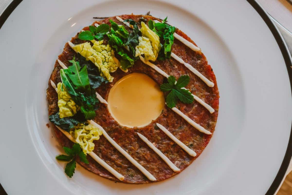 Tra i piatti in carta troviamo le storiche polpettine 1989, fatte di erbe spontanee con il cuore filante di formaggio, così come la tartare di Bruna Alpina Originale, frollata per 60 giorni e condita con olio, sale, pepe, cetriolo e boccioli di tarassaco, accompagnata da spuma di zabaione al liquore Eremyth e una passata di pomodoro confit. Il piatto si completa in cucina con un cremoso di mascherpa, vegetali autunnali e rais dulce. Una Pecora a Londra valorizza proprio la pecora gigante bergamasca in raviolo aperto, spuma di patate e latte di mascherpa, mentre il capretto orobico brasato viene servito in terrina con glassa di mirtilli, fondo bruno e verdure di stagione.