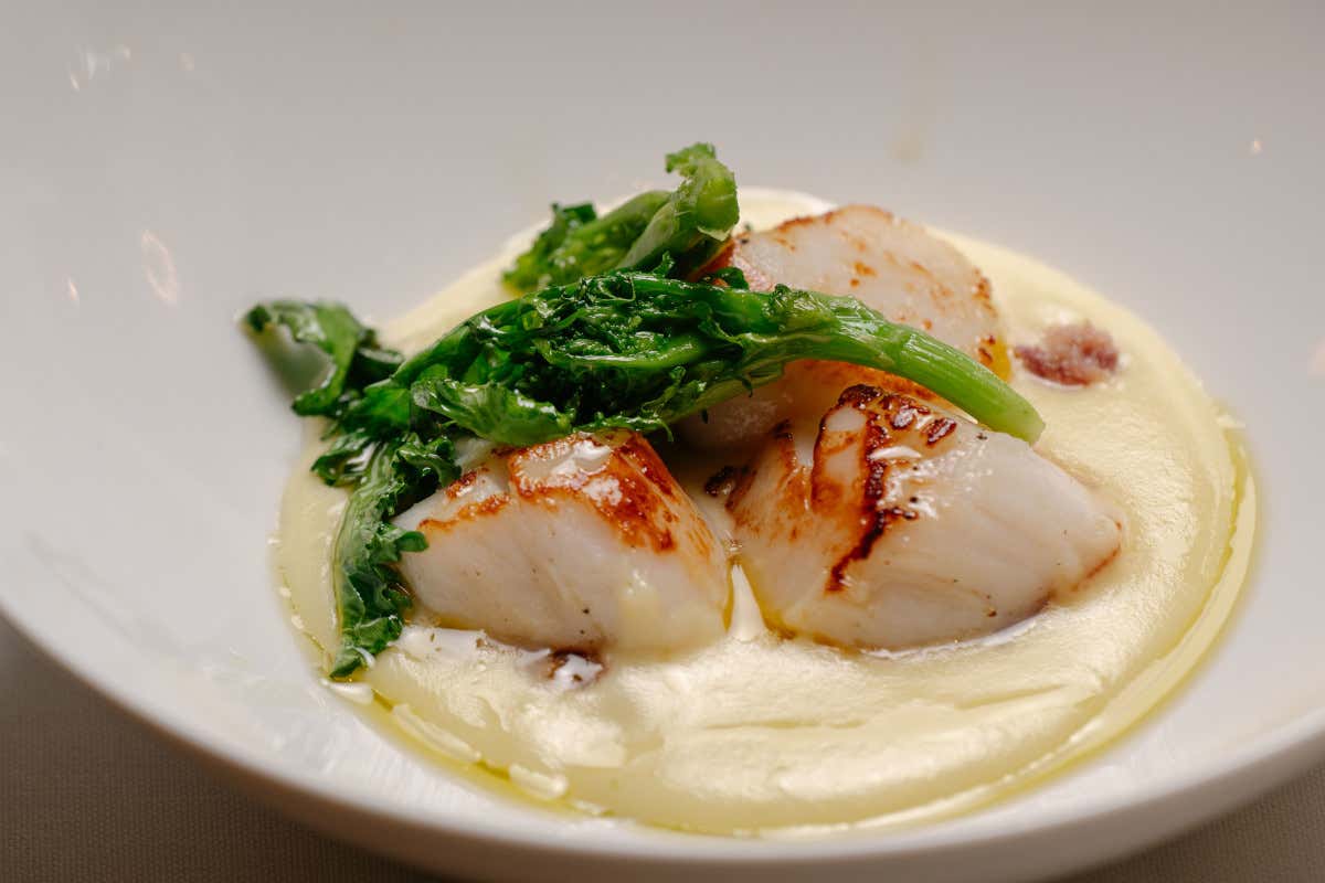 Spiga: Capesante con crema di patate, cotechino e cime di rapa