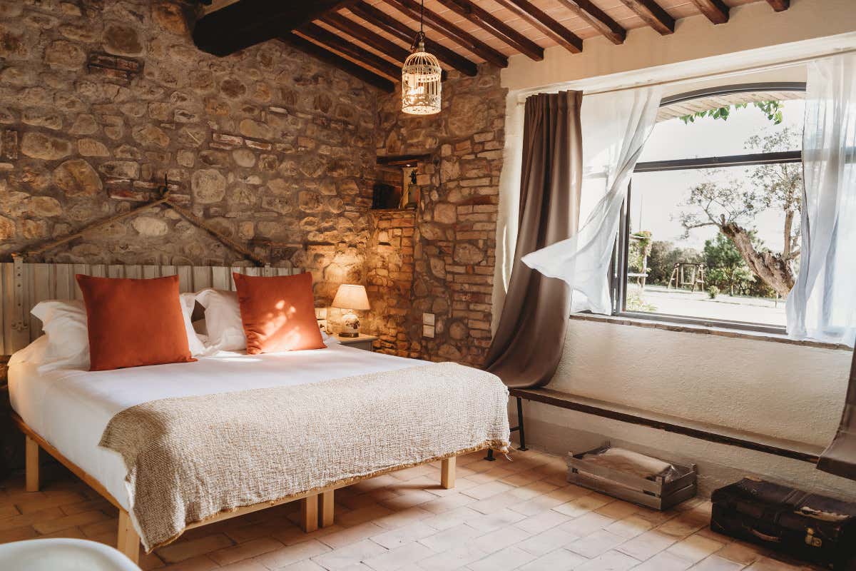 Le nove camere e suite, ognuna con un carattere unico, combinano comfort moderno e fascino d’epoca: pavimenti in cotto originali, arredi ricercati e dettagli scelti con cura. Alcune regalano il calore di un camino, altre il relax di una vasca freestanding, tutte offrono una vista spettacolare sulla natura incontaminata della Val d’Orcia.