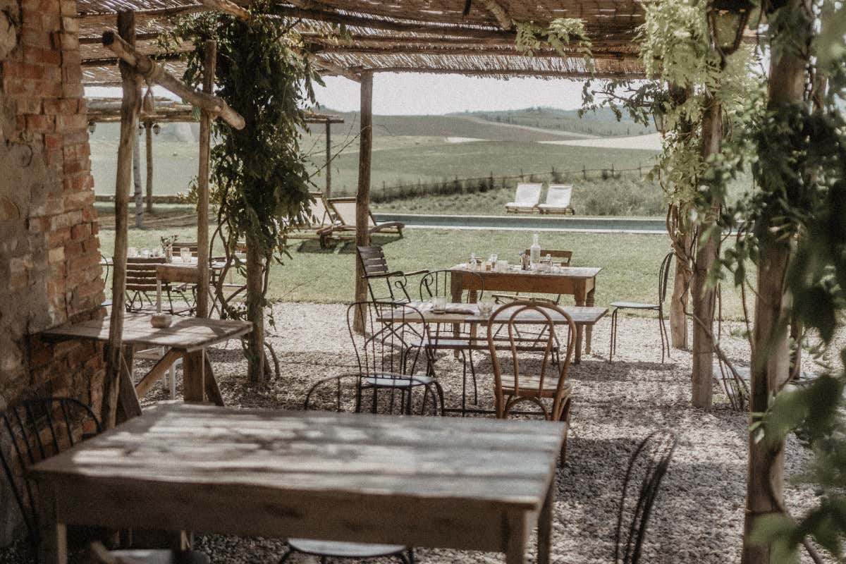 Locanda in Tuscany sorge in una posizione incantevole, tra Bagni di San Filippo e Bagno Vignoni, a pochi passi dal pittoresco borgo di Castiglione d’Orcia. Immersa nella magia della Val d’Orcia, Patrimonio dell'Unesco, questa dimora di charme è il luogo ideale per feste private ed eventi esclusivi, tra cui matrimoni raffinati su misura. Le cerimonie simboliche o civili possono svolgersi in scenari mozzafiato: nel giardino, a bordo piscina sotto il pergolato, oppure tra le dolci spighe di grano con vista panoramica sulla valle. Per chi desidera un matrimonio religioso, nei dintorni si trovano numerose chiese caratteristiche.