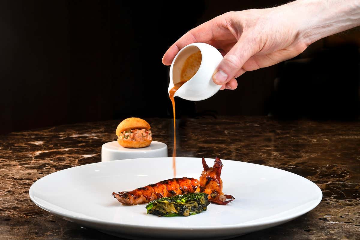 Il menu include inoltre piatti realizzati con la tecnica di cottura alla griglia “robata”, come il Pescato del giorno, l’Astice e la Pluma di Patanegra (accompagnata da fungo cardoncello alla brace, mela annurca, salsa bbq al carbone e cornetto di patata). Per i palati vegetariani, è disponibile il Percorso dell’orto, che celebra la freschezza e la varietà dei prodotti del territorio.