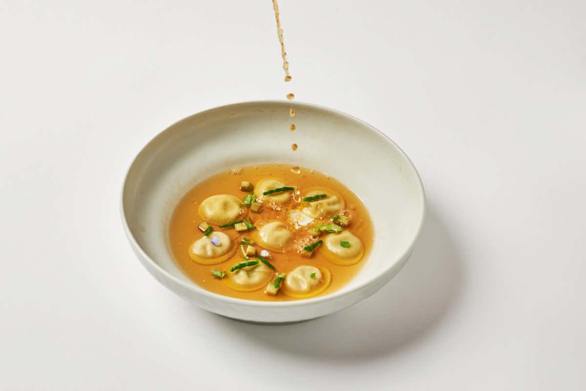 Bernardo Tavola Temporanea: bottoni di pasta all'uovo ripieni di carciofi e caprino