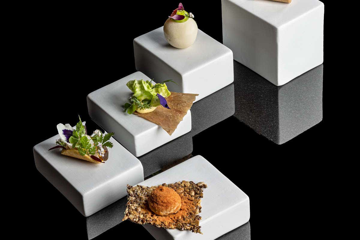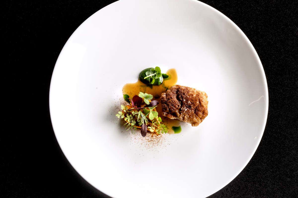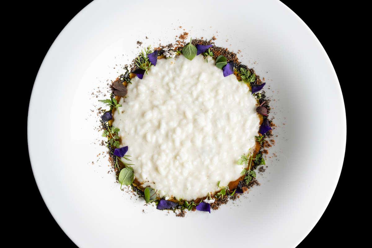 «Uno degli elementi distintivi del ristorante è l’idea di abbattere le barriere tra sala e cucina», dice chef Monesi. «Qui il cliente può confrontarsi direttamente con i cuochi, osservando da vicino il lavoro e la dedizione che ogni piatto richiede. La cucina è completamente a vista: non si tratta solo di un’esperienza culinaria, ma anche di uno spettacolo che mostra le dinamiche del lavoro, rendendo tangibile la passione che ci mettiamo».
