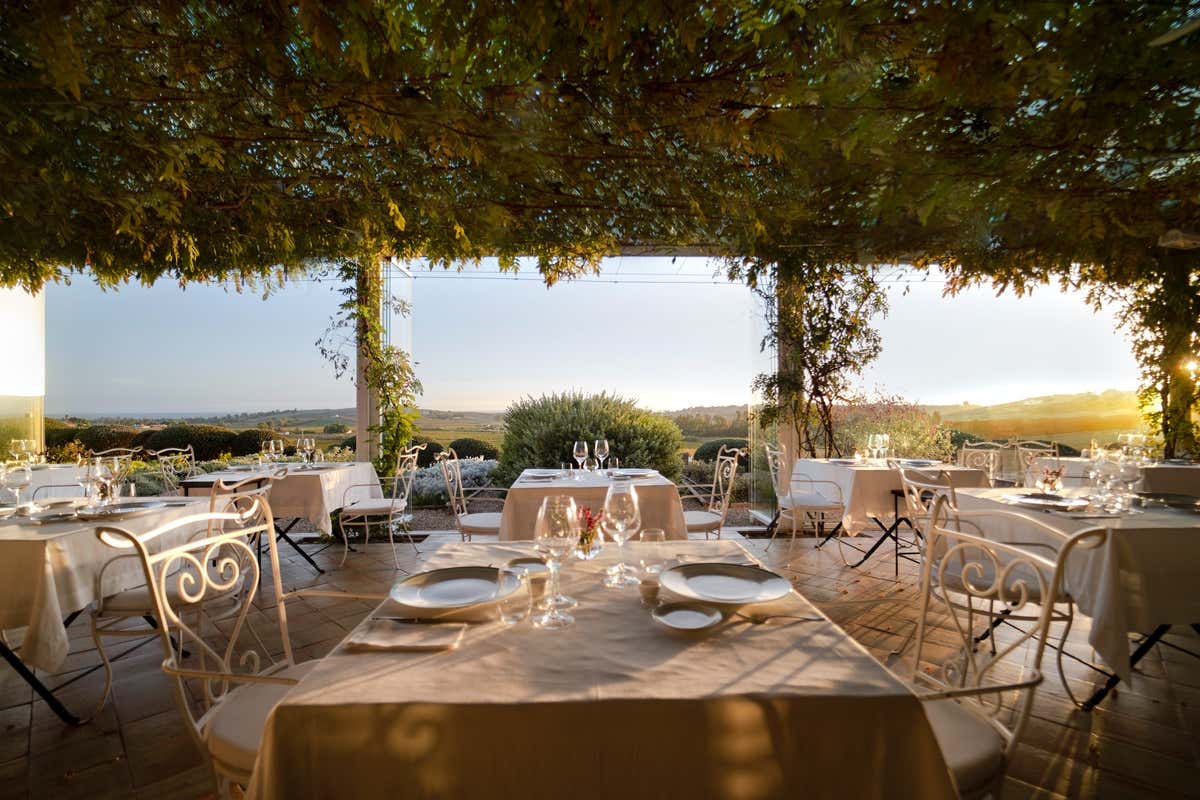 I tavoli del ristorante La Foresteria di Planeta Estate