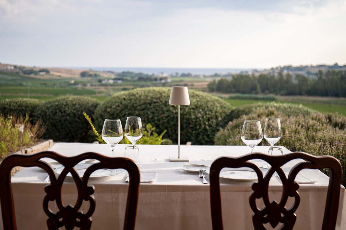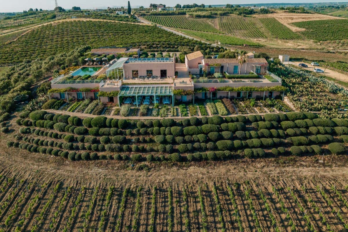 La Foresteria Planeta Estate è il punto di partenza. Un relais immerso nel paesaggio, a pochi chilometri da Porto Palo, affacciato su un mosaico di vigneti che si estende fino al mare. L’edificio, progettato per integrarsi nel contesto naturale, accoglie 14 camere, una piscina panoramica e spazi comuni dove ogni dettaglio - dai tessuti alle ceramiche - parla la lingua del territorio.