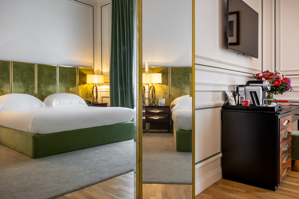 Il fiore all'occhiello della struttura è la Dama Suite, il massimo dell'eleganza e del comfort. Caratterizzata da tonalità avvolgenti di blu, vanta arredi su misura, dettagli in marmo pregiato e opere d'arte selezionate per riflettere l'eredità aristocratica dell'hotel. Gli spazi ampi e luminosi includono un letto king-size, un salotto raffinato e un bagno esclusivo con vasca da bagno e doccia, un unicum all'interno dell'hotel.