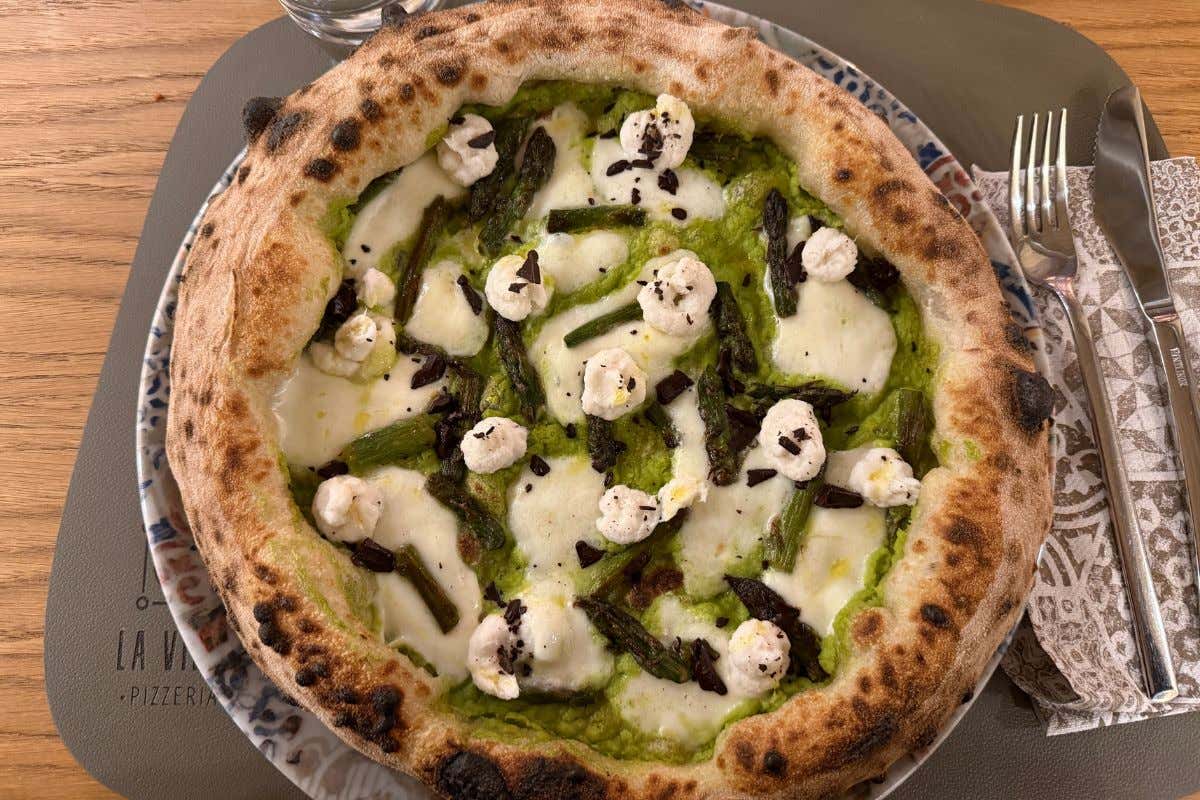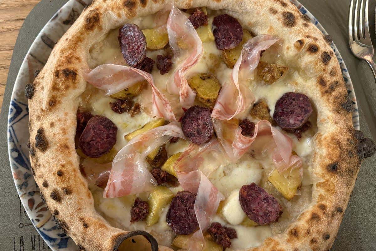 In una terra in cui è più tipica la pizza romana (data anche la vicinanza con la Capitale, appena un'ora di macchina), bassa, biscottata e scrocchiarella, è più raro trovare pizze che abbracciano le altre "scuole". Cornicione pronunciato, impasto senza prefermenti, topping abbondanti e bella digeribilità.