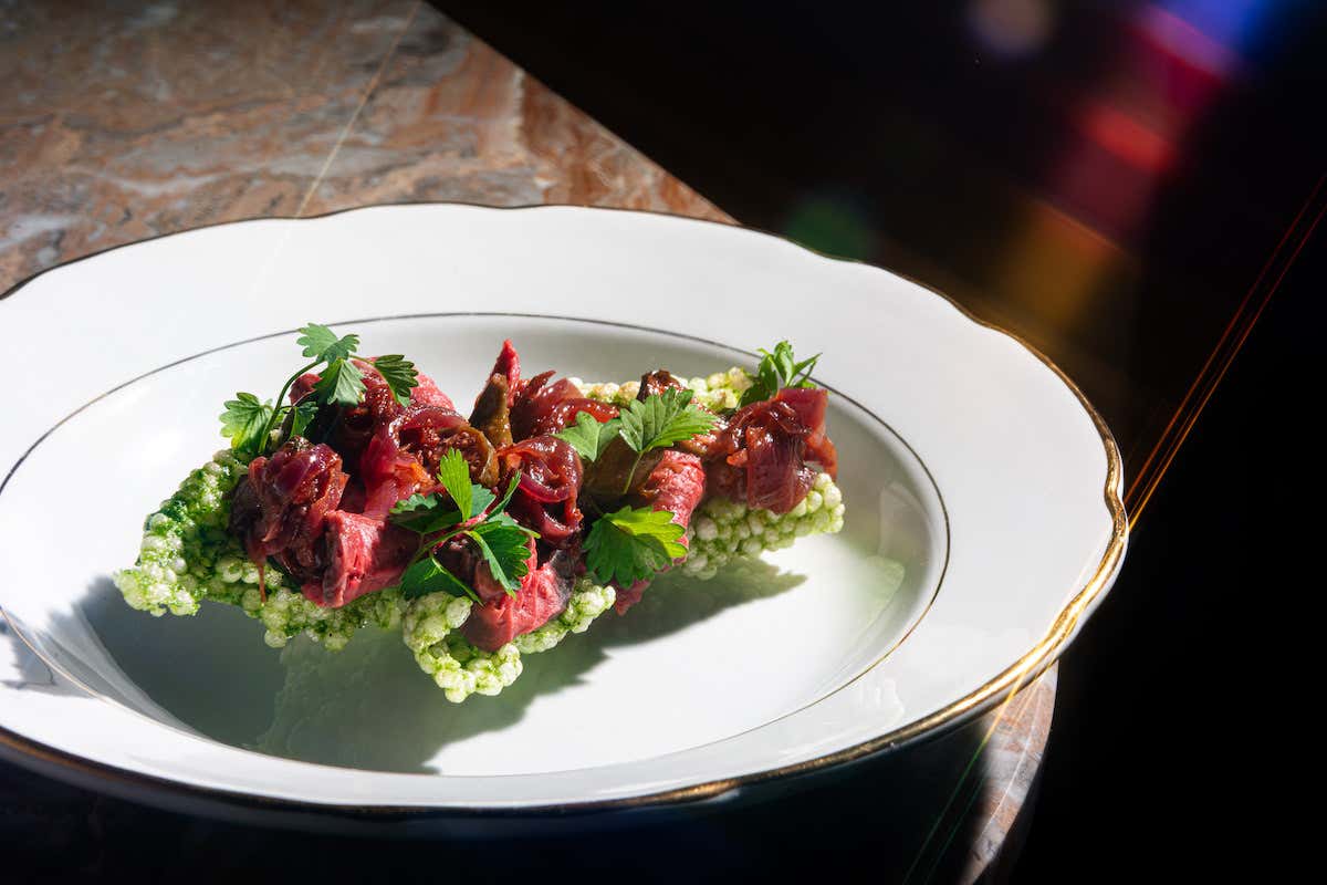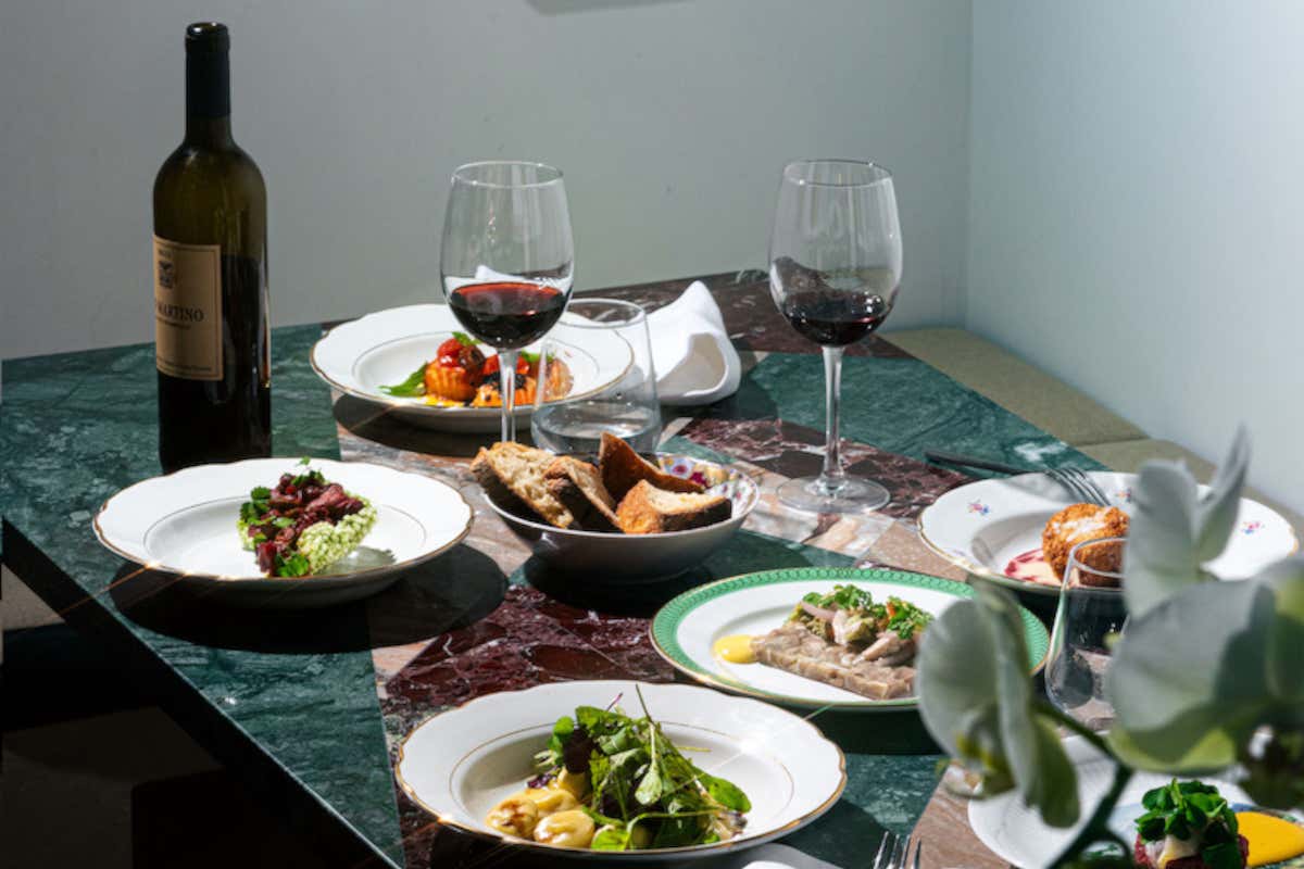 La proposta gastronomica si basa su una cucina italiana concreta, che punta sull’equilibrio tra i sapori e su ingredienti selezionati quotidianamente nei mercati locali. Non esiste una divisione canonica tra antipasti, primi e secondi: in carta ci sono 8-9 piatti fissi, aggiornati ogni due mesi, e 5-6 fuori menu settimanali.
