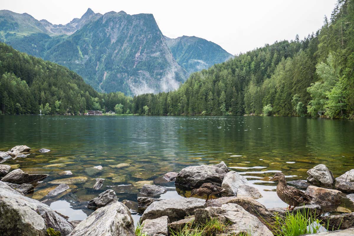 Il lago di Piburg si trova in una posizione scenografica tra abeti secolari e montagne che si specchiano sulla superficie