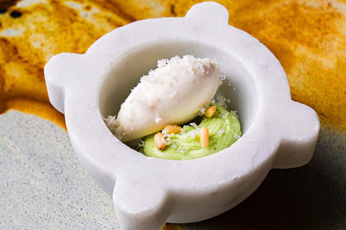 Dal Piemonte ritorna in Liguria e dopo una folgorante cena al Mirazur di Mauro Colagreco decide di volerci fare esperienza: entra prima come stagista per poi affrontare diverse partite e crescere fino a poter entrare nel novero degli sous chef, salvo tornare a Imperia dopo essere diventato papà. La prima apertura, nel 2019 è quella di Kilo, sul Lungomare di Imperia, con un bel dehors che guarda al mare, una pizzeria moderna che gli dà modo di raccontare e mettere a punto una vocazione forte come quella per i lievitati. Poi arriva Equilibrio e nel giro di poco tempo anche il riconoscimento da parte della guida Michelin che nell'ultima edizione assegna al ristorante una stella. Dell'ambiente, confortevole e curato, abbiamo scritto qualche riga fa.